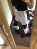 It is a little big tight in my butt area, but I have a big one, so I think it will fit anyone by their normal sizing, the material is nylon kind of, so it makes plastic noices, but other than that I love it!