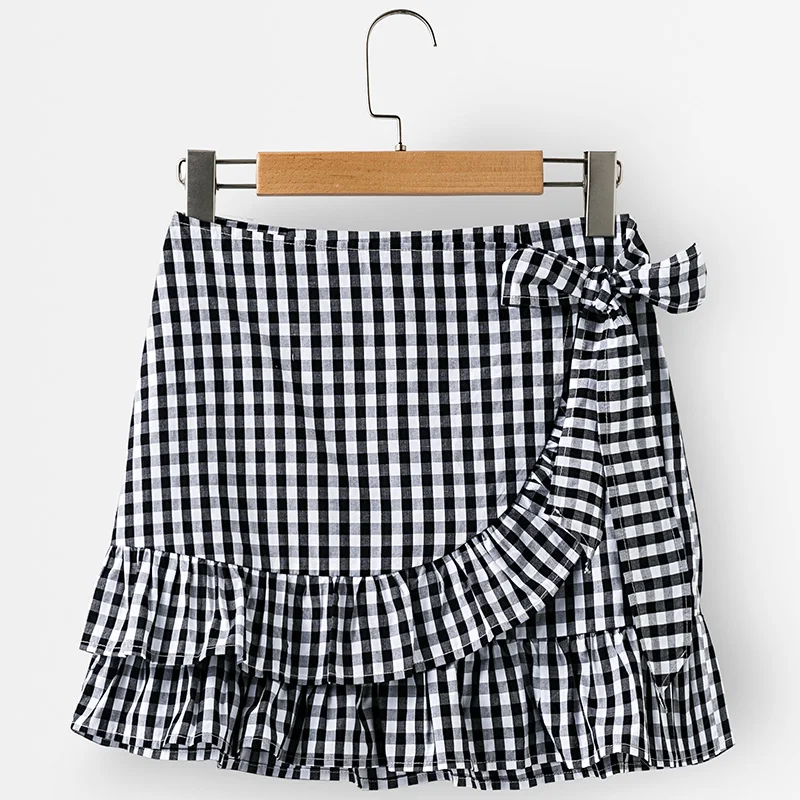 FREE SHIPPING !! High Waisted Ruffle Plaid Women Skirt JKP628