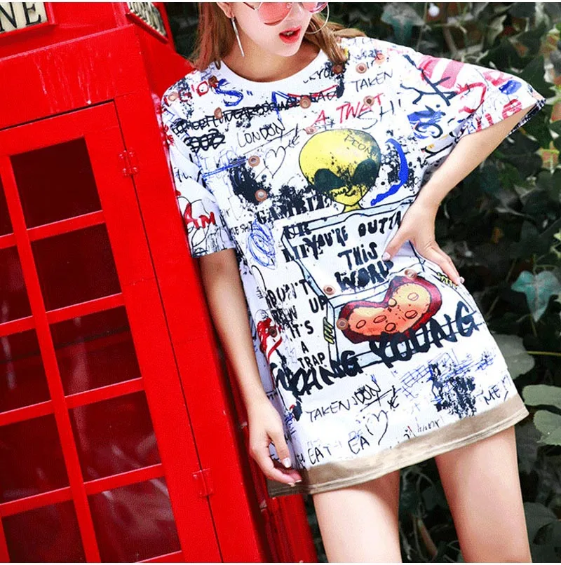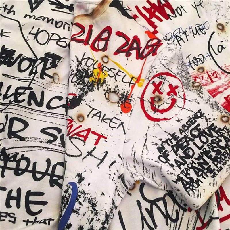 FREE SHIPPING Hip Hop Graffiti Men’s Tshirt Short Sleeve Hand Paint O-Neck Lover Tshirts Unisex Tee Summer Couple Streetwear Top Plus 5XL JKP2214