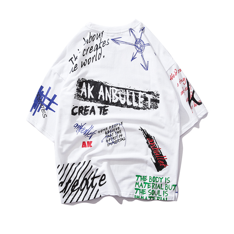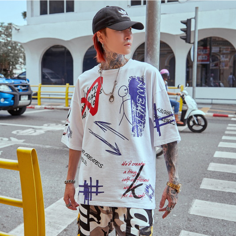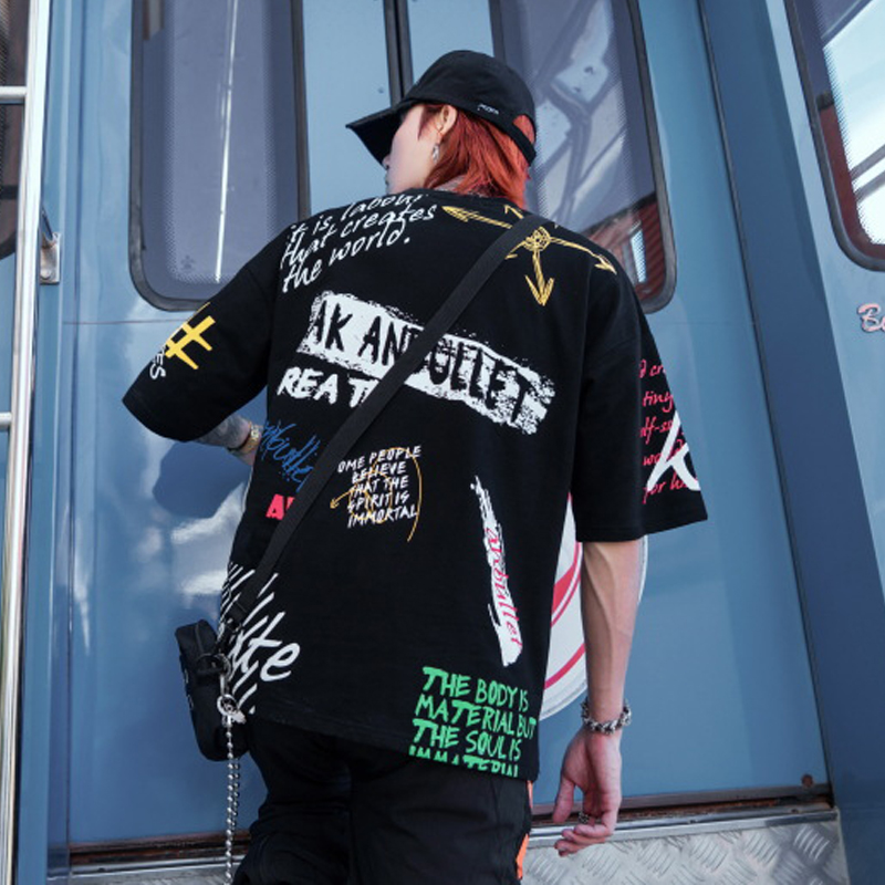 FREE SHIPPING Hip Hop Graffiti Print T-shirts Men Streetwear Painted tshirt O-Neck 2019 Summer Spring Hip Hop Couple Tops Tees JKP2213