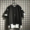 FREE SHIPPING Hip hop Hole Short sleeve T shirt Men O neck Black White Patchwork Tees Streetwear JKP3779