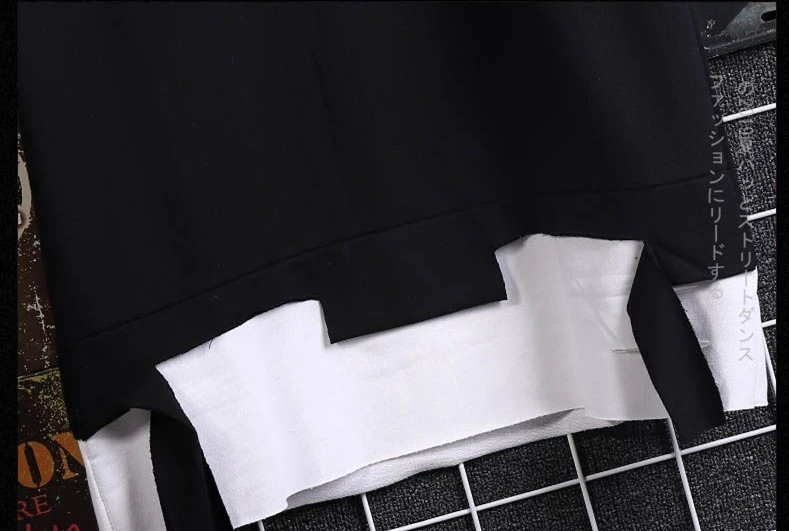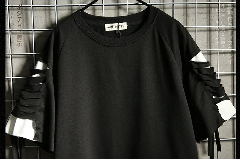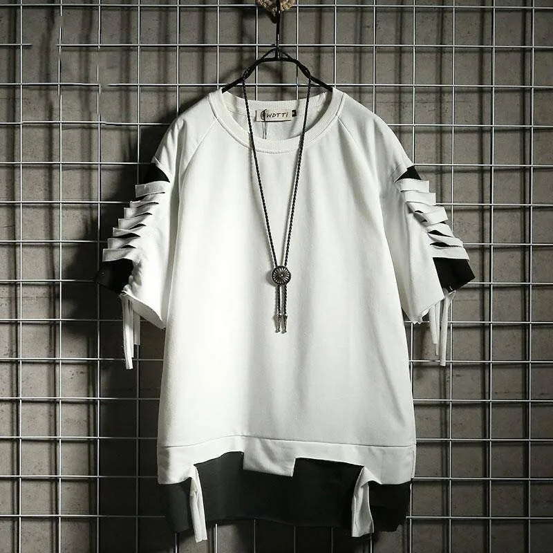 FREE SHIPPING Hip hop Hole Short sleeve T shirt Men O neck Black White Patchwork Tees Streetwear JKP3779