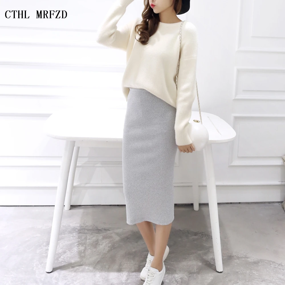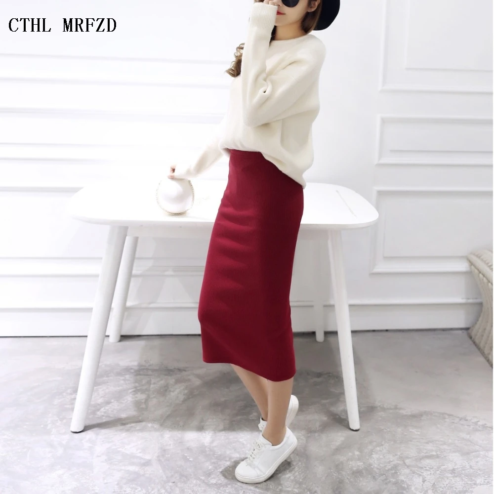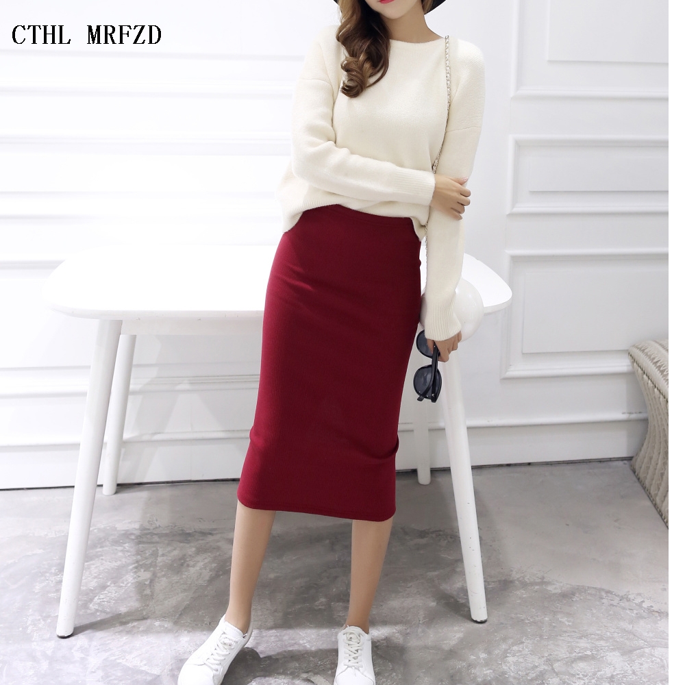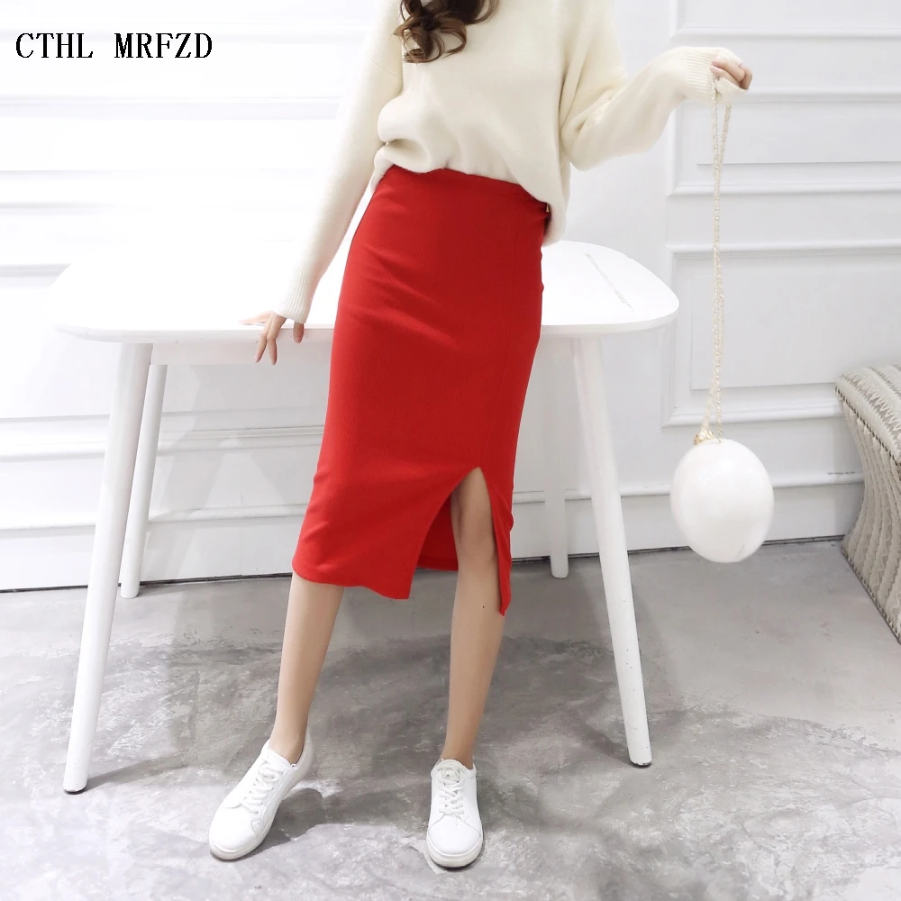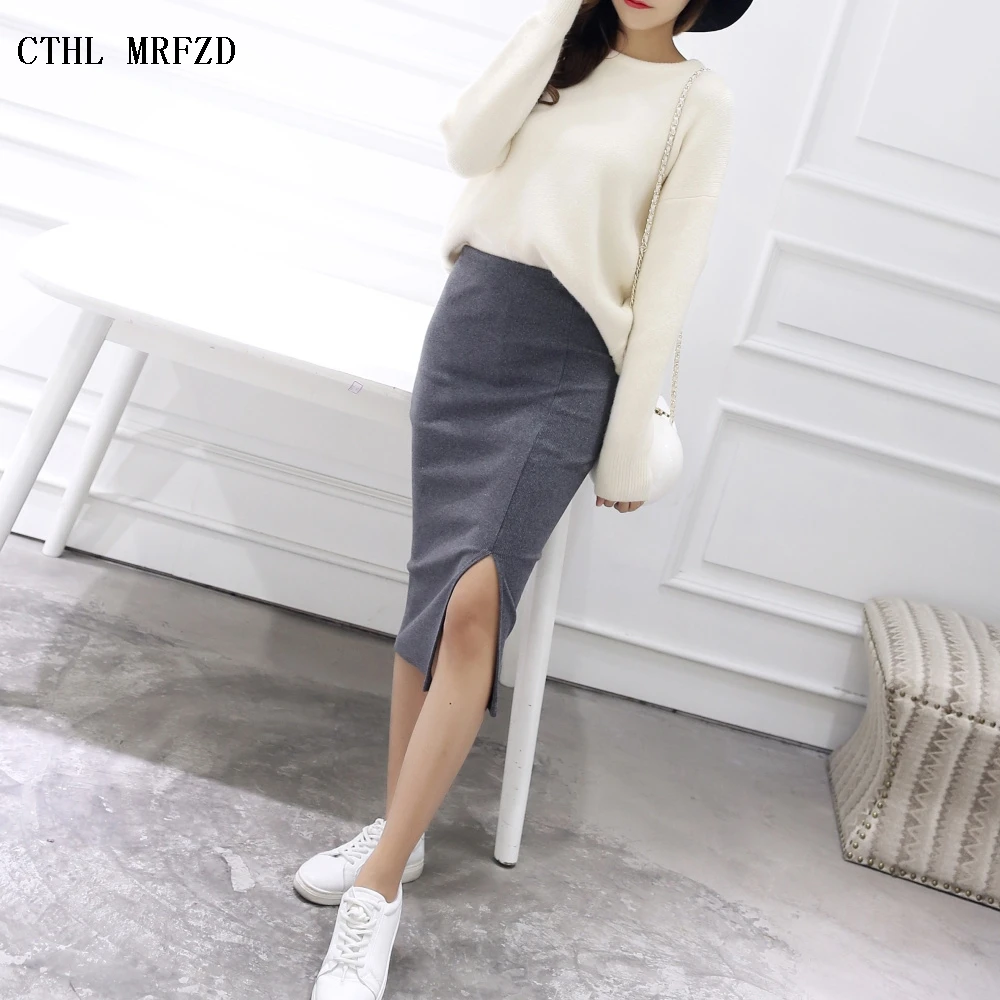 FREE SHIPPING Hip Skirt Slit Stretch Slim JKP804