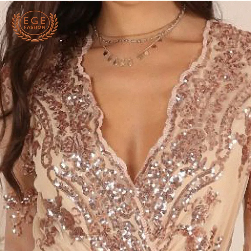 FREE SHIPPING Hoco Playsuit Sequined Floral Long Sleeve JKP984