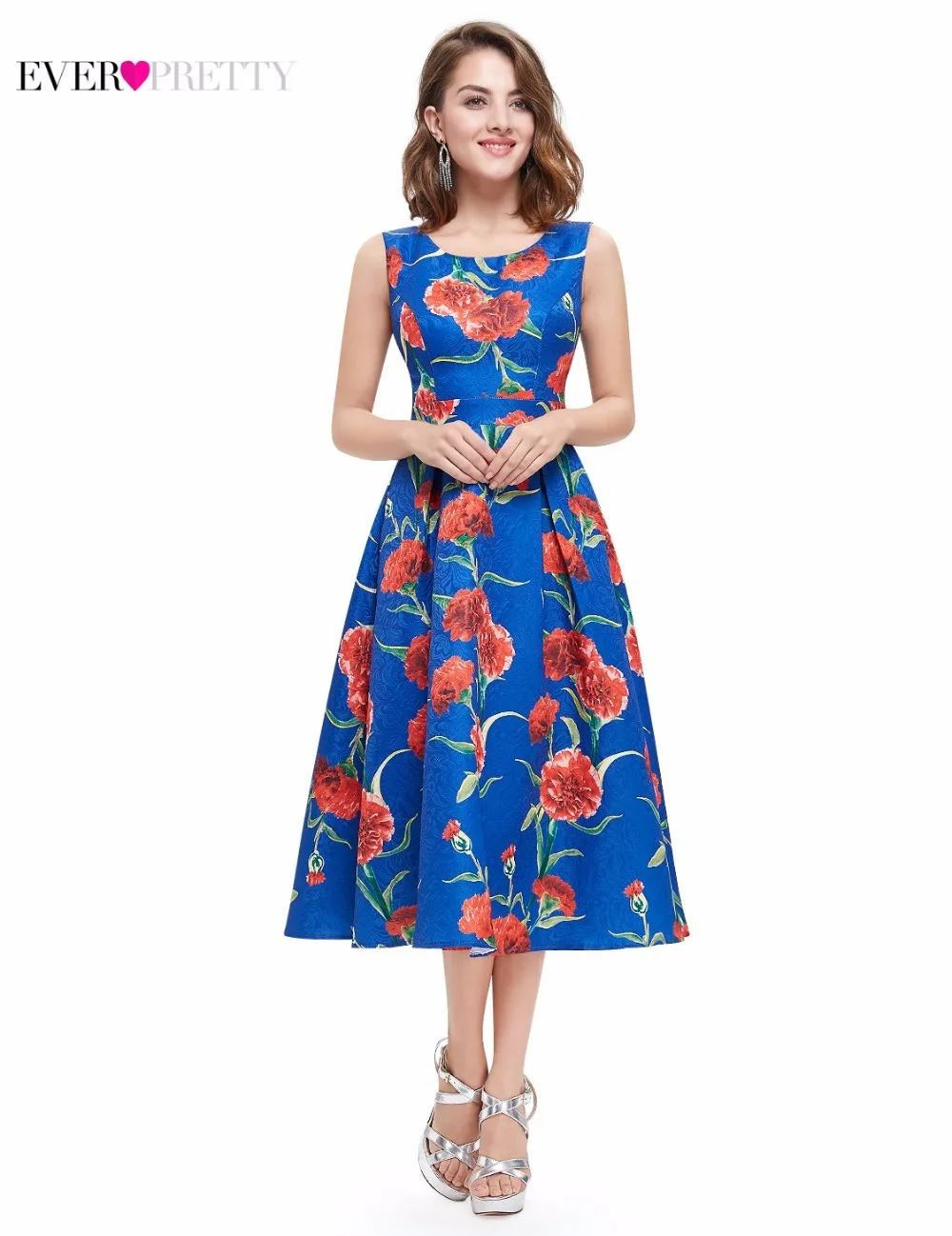 FREE SHIPPING Homecoming Dresses Ever Pretty Summer A-line Satin Vestidos Coctel Floral Printed Sleeveless Cheap Short Party Gown JKP3006
