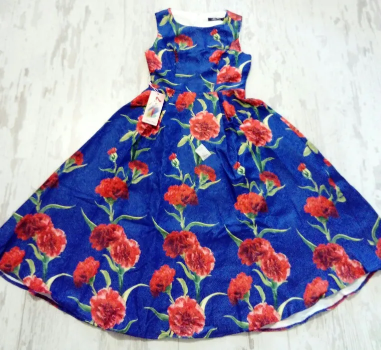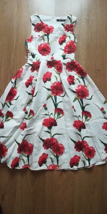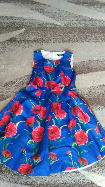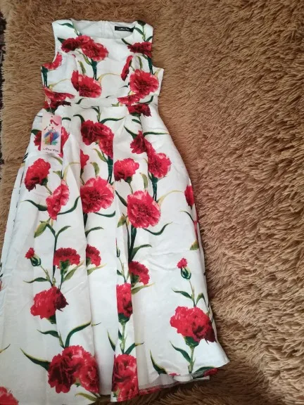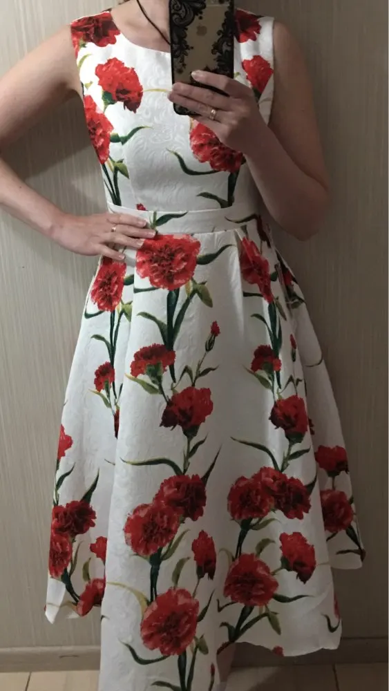 I bought this dress on sale in honor of dr. ali. The price was very pleasant, thanks to the store for the promotions and discounts. The dress on the russian 42 (parameters 84-63-89) took the size 4. i was a bit more at the waist. Length on height 172 cm-below the knee. Cloth is dense, like jacquard, there is a lining. For a hot summer will not work. Sewing quality, the colors are bright. The skirt is lush. Corresponds to the description of the seller. Shop recommend.