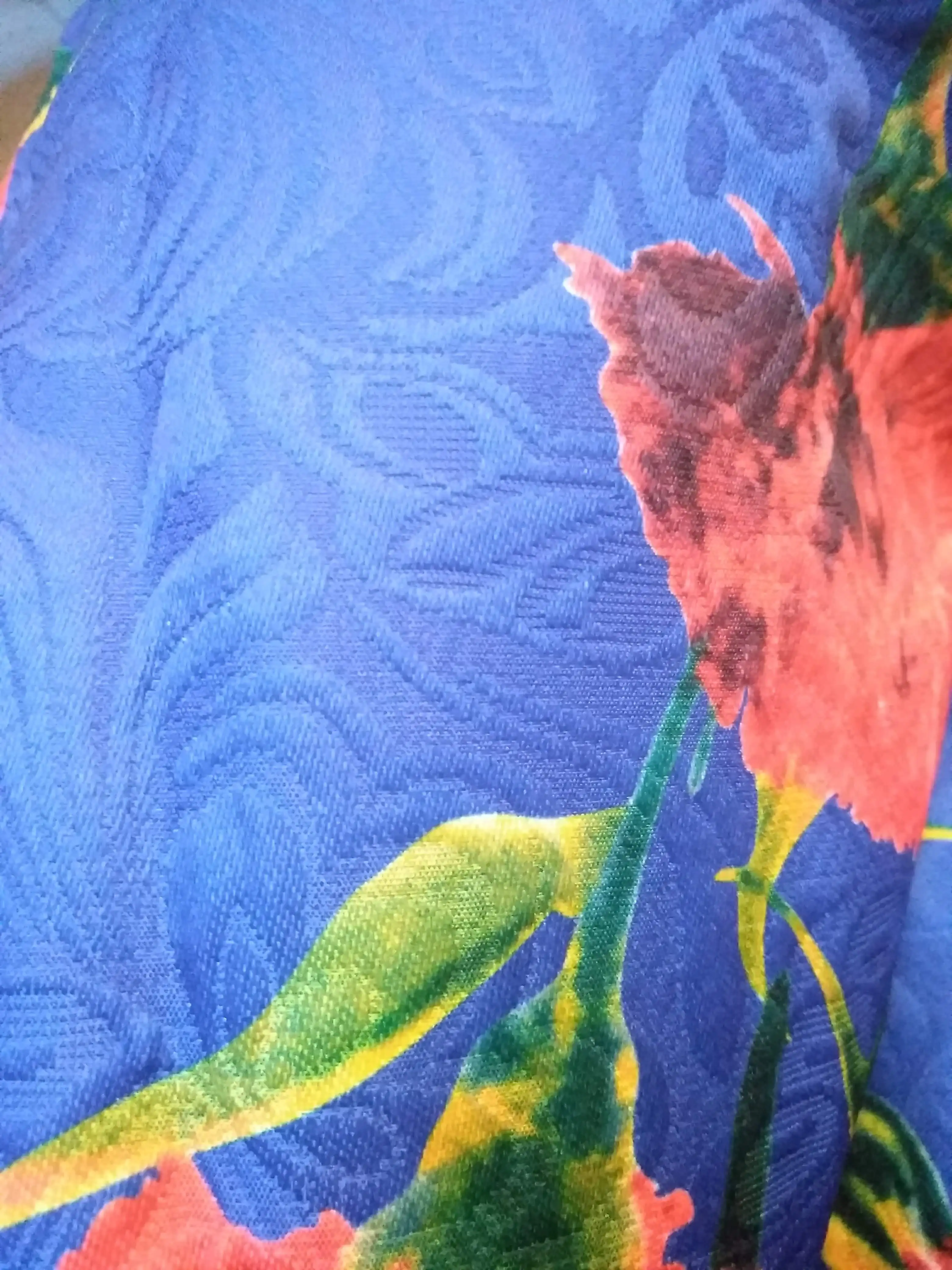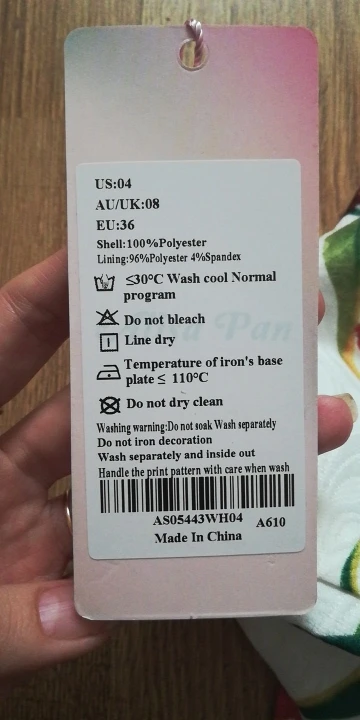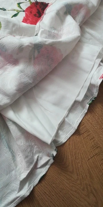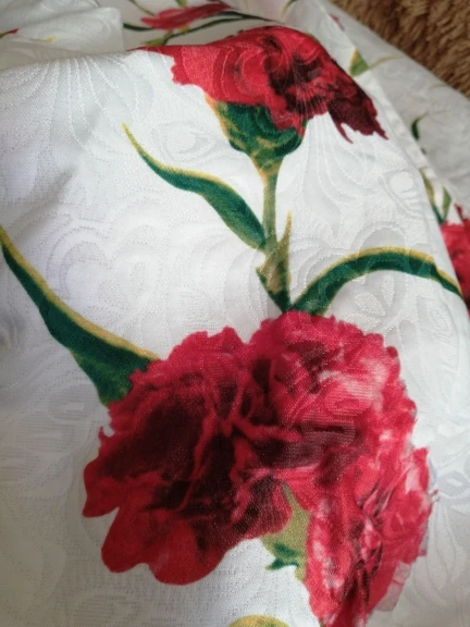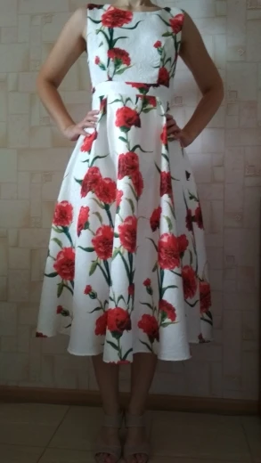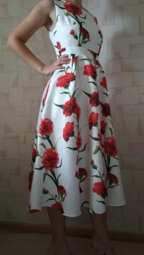 The dress is chic. Dense fabric, bright pattern. Super! Came to 46 size.