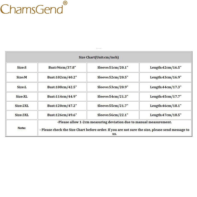 Size:2XL Bust:120cm/47.2″ Sleeve:55cm/21.7″  Length:46cm/18.1″