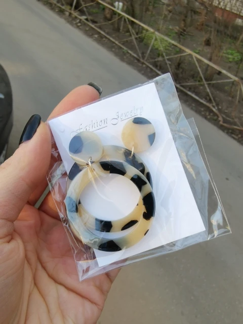 Barely waited, two months went. the earrings are very beautiful. acrylic or plastic, as correct, but i watch on tv, all in similar. Patience and they are yours! To buy is recommended!
