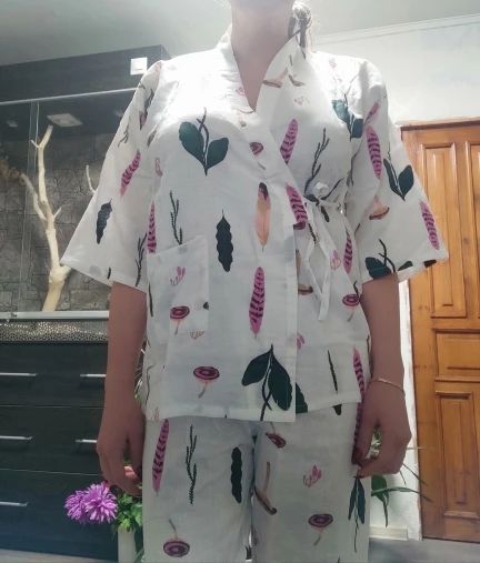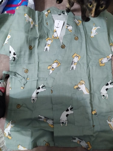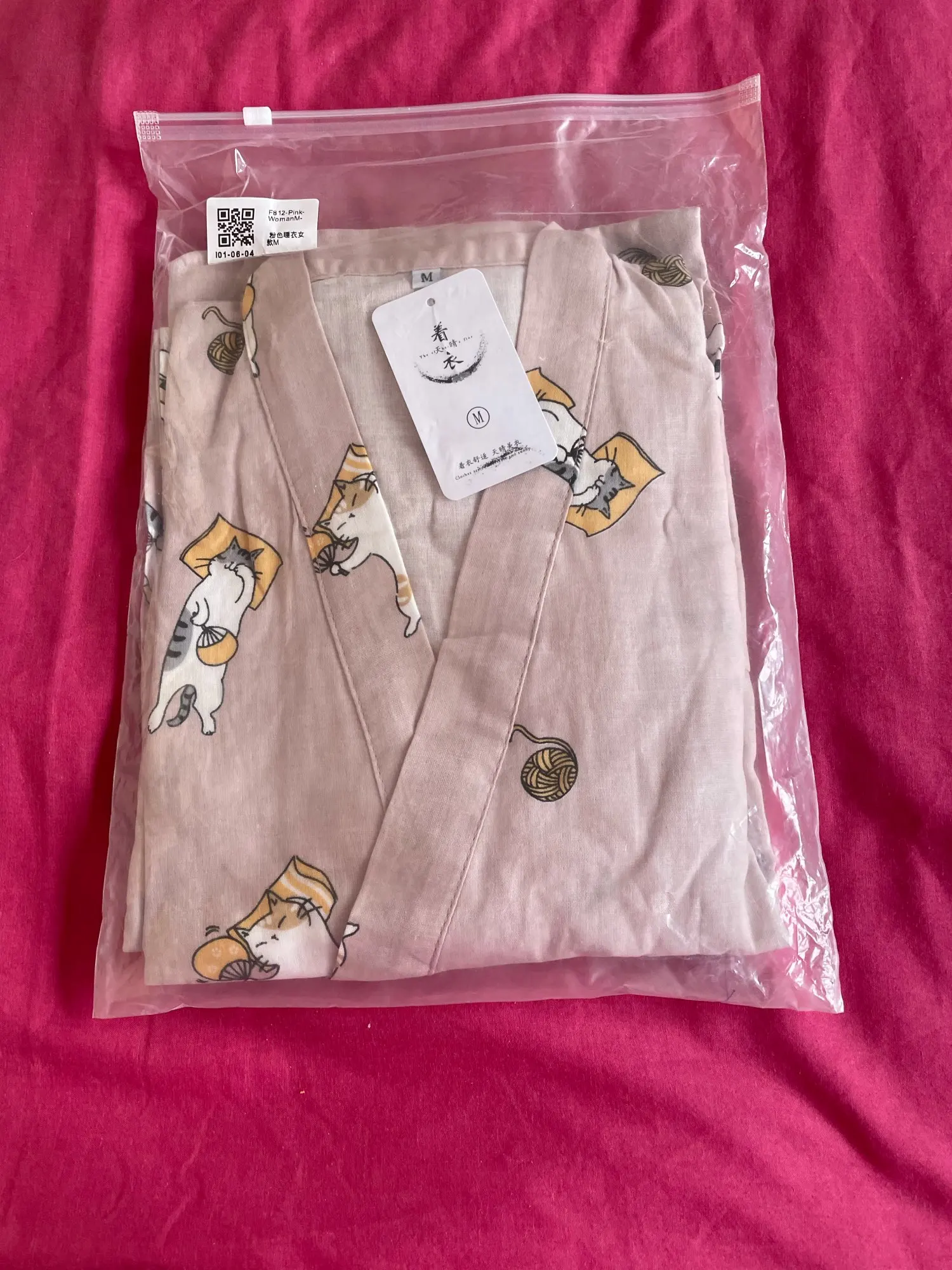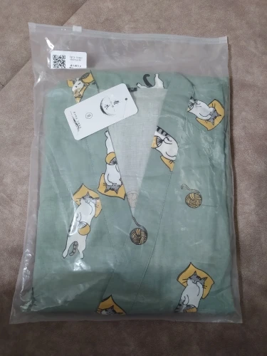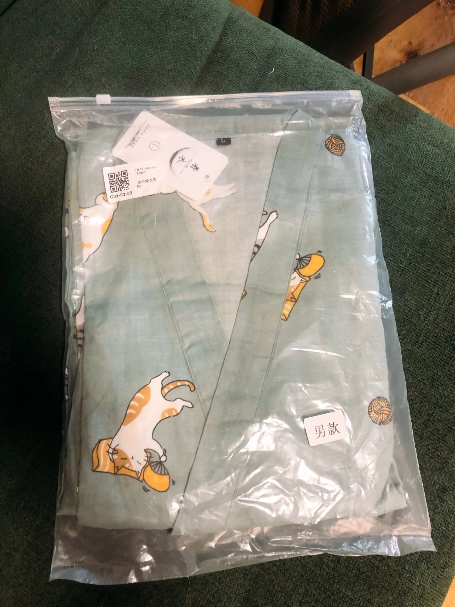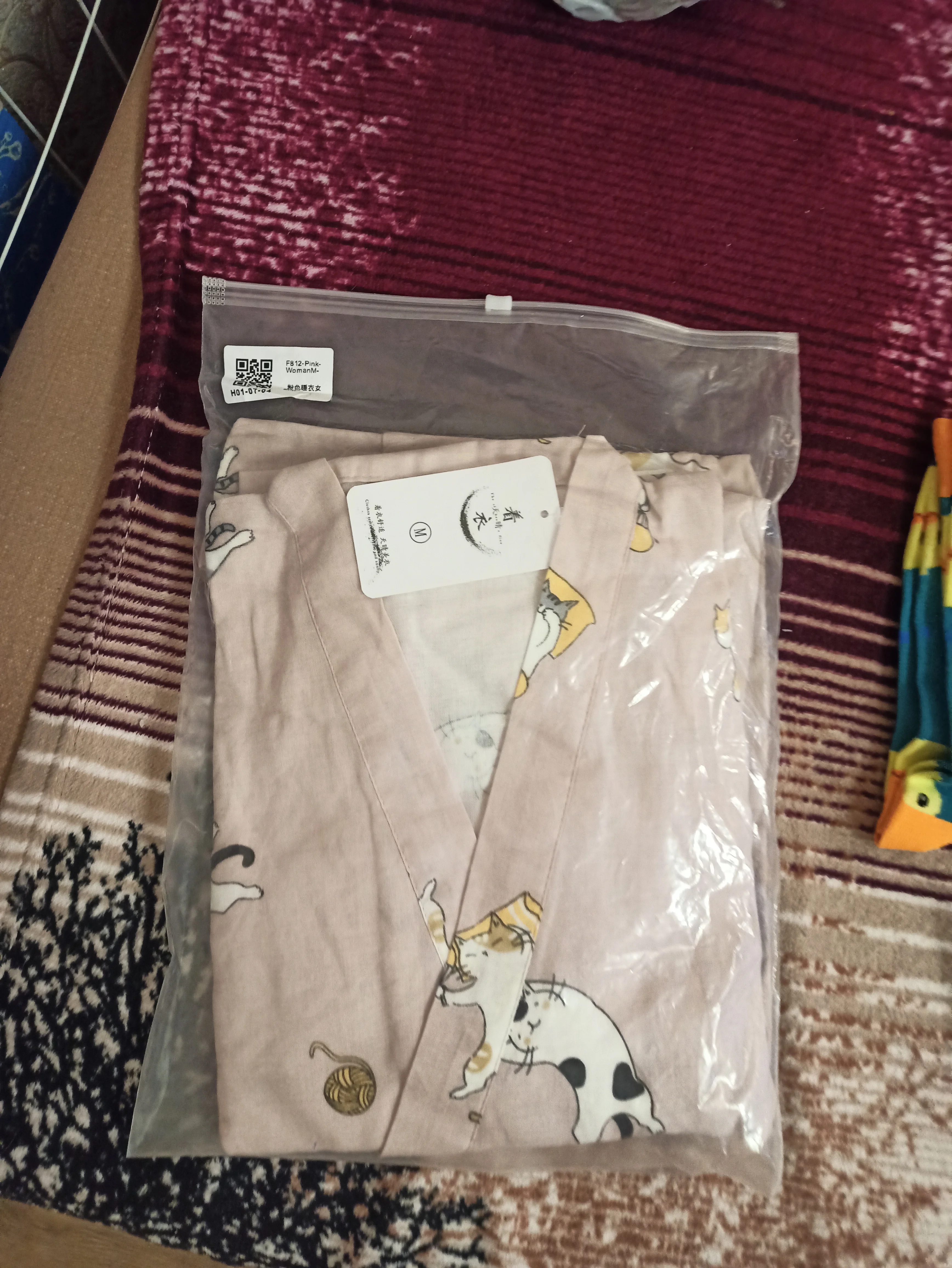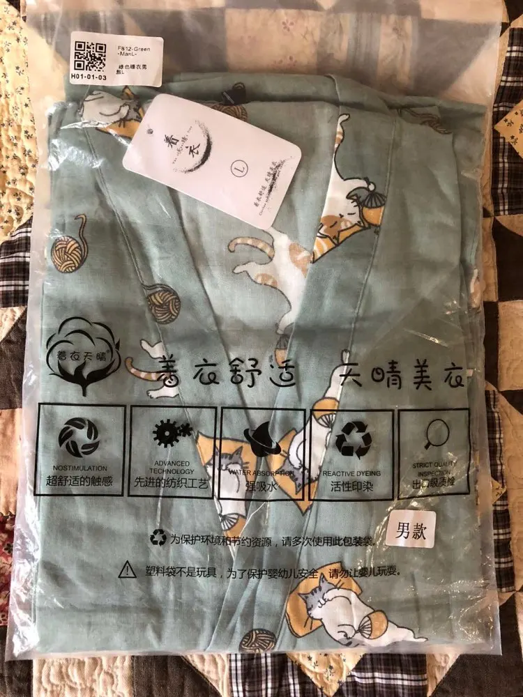 A beautiful home kimono made of fine cotton. Color as in the photo. I wear m, but I ordered a male L. I love when home clothes sit freely. It reached Moscow in 17 days. You can buy as a gift! Packed neatly in ziplok package.