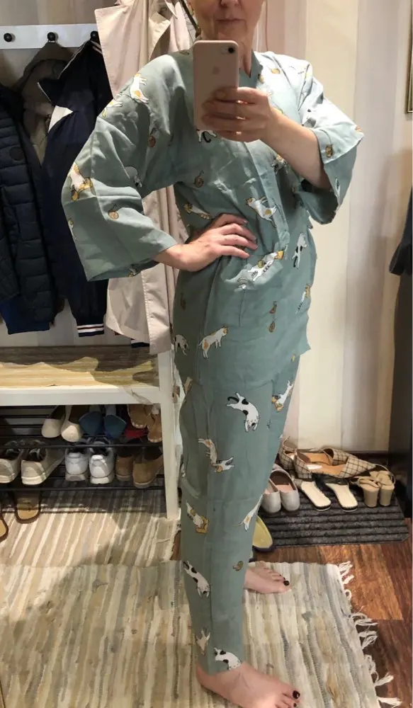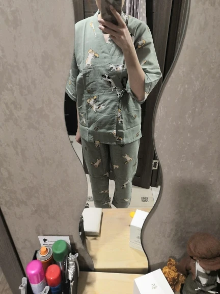 Very cozy home clothes with a clear pattern and smooth stitches. Usually I'm looking for a European Xs, but this product approached me M. The ties keep well. Recommend.