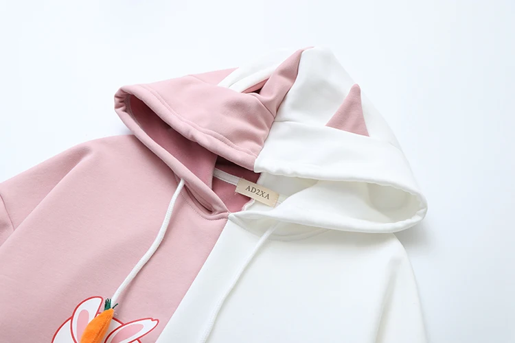 I'm 5"1, Female, and it was a great size and length for me! Fabric is dense(reminds me of exercise clothing fabric), so it should work well as a sweat shirt. Ears are white on one side and black on the back. Exactly as described, and came faster than I expected! Thank you :>