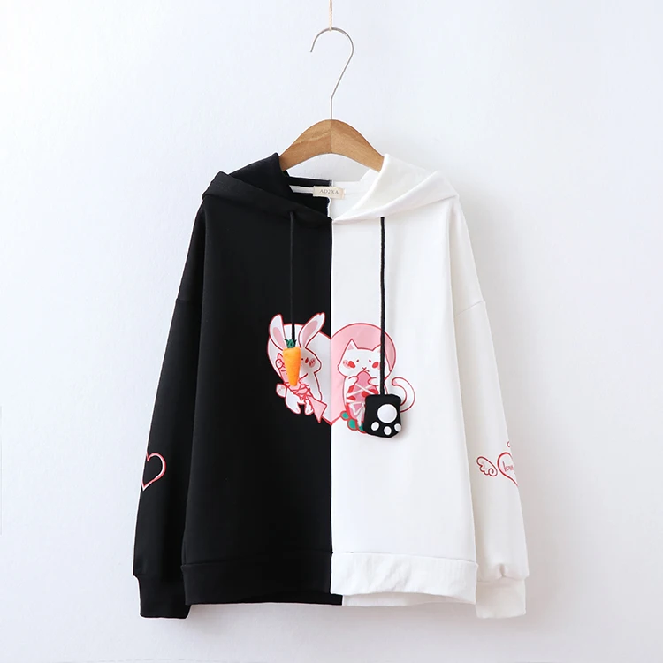 I'm 5"1, Female, and it was a great size and length for me! Fabric is dense(reminds me of exercise clothing fabric), so it should work well as a sweat shirt. Ears are white on one side and black on the back. Exactly as described, and came faster than I expected! Thank you :>