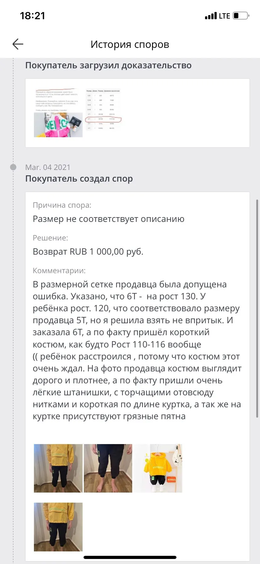 Поставила 5 звёзд , так как продавец вернул деньги. К сожалению размерная сетка не соответствует(( очень расстроились, что на несколько размеров меньше пришёл костюм, хотя я заказала наоборот побольше
