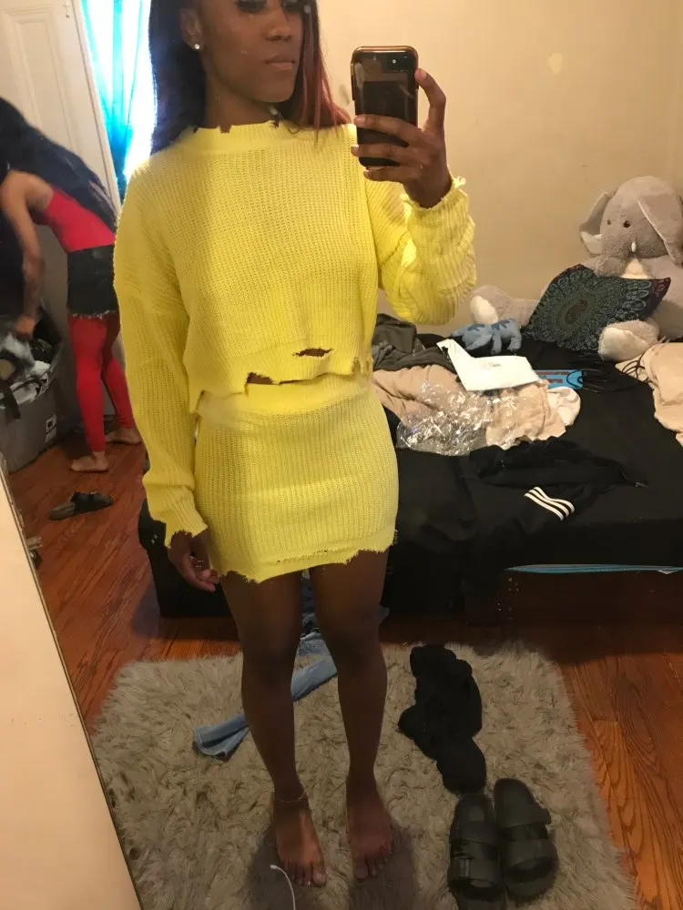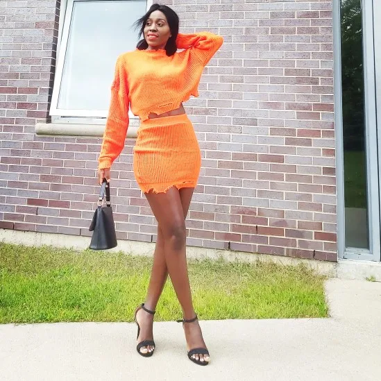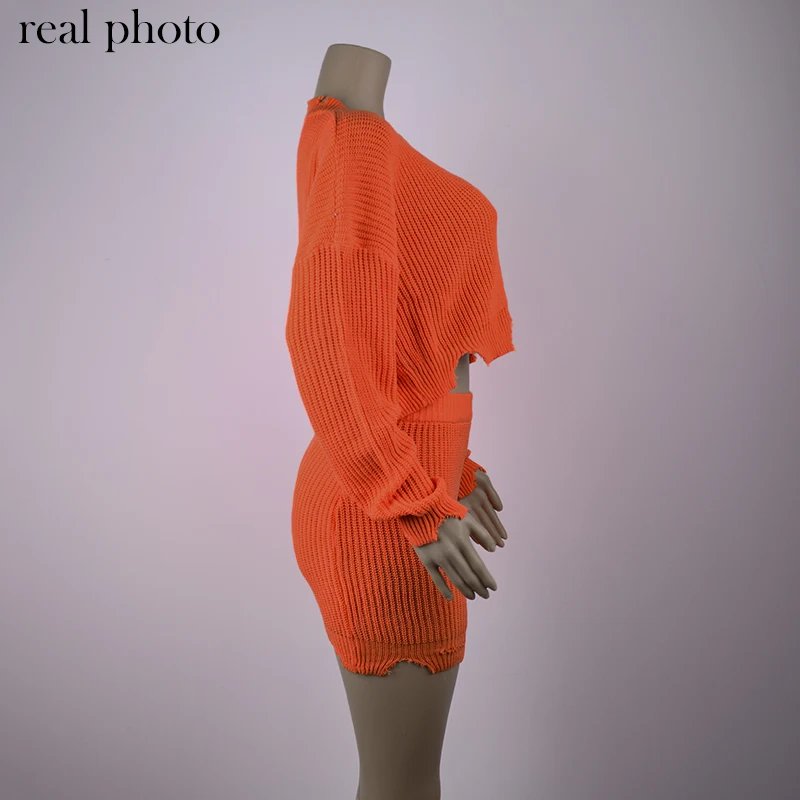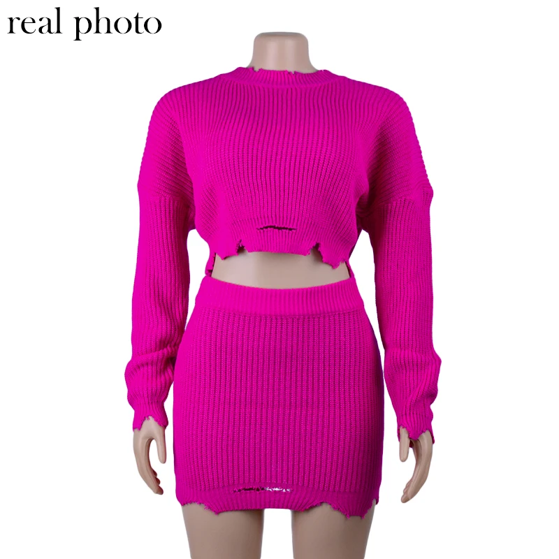 FREE SHIPPING Knitted Autumn Two Piece Outfits Solid Cropped Sweater And Skirt Set JKP3480