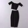 FREE SHIPPING !! knitted button bodycon crop top set JKP578