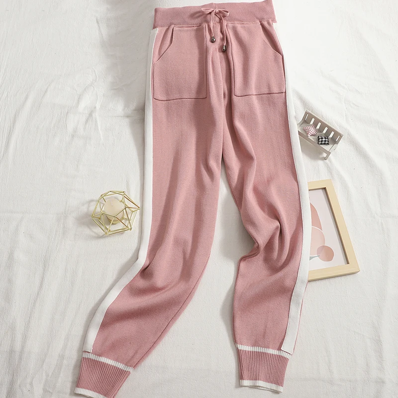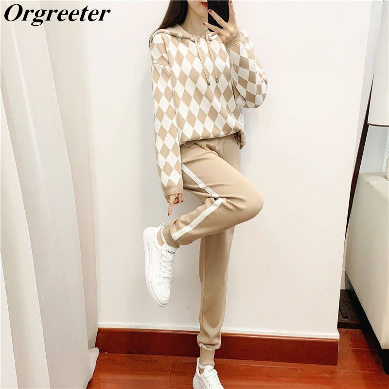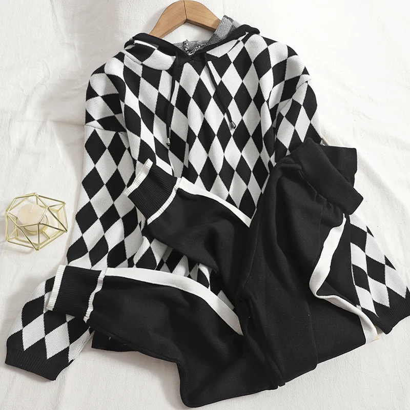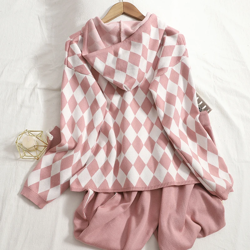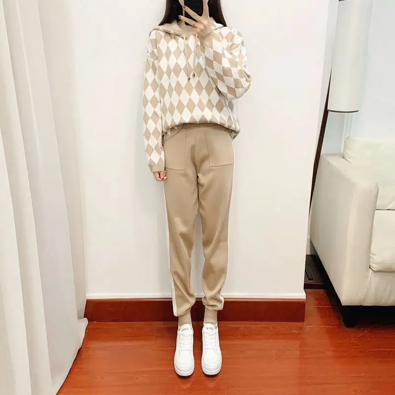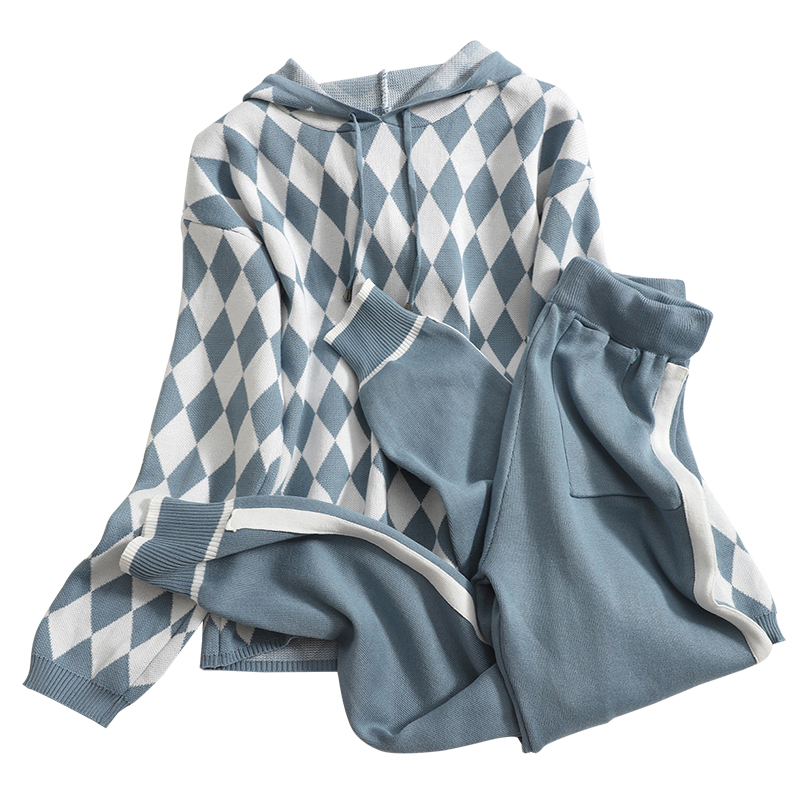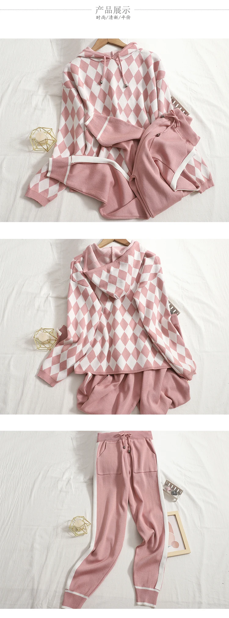 FREE SHIPPING Knitted Carrot Pant And Loose Puulover Hooded JKP5861