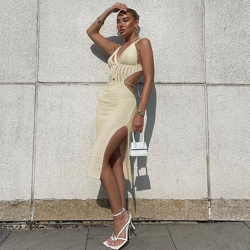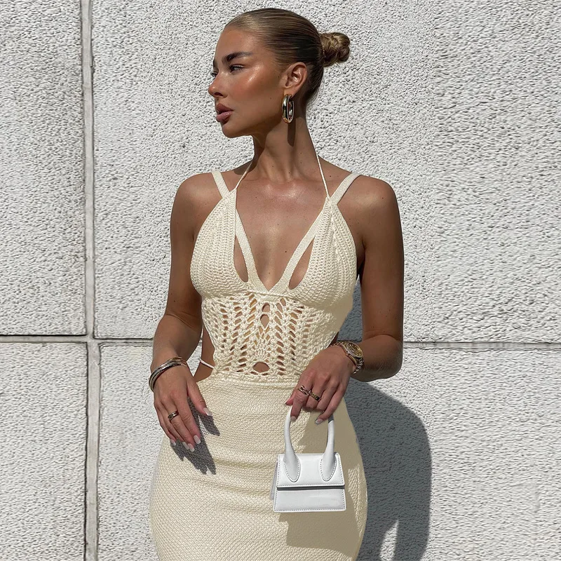 FREE SHIPPING Knitted Cut Out Halter Sexy Backless Summer Beach Dress for Women JKP6049