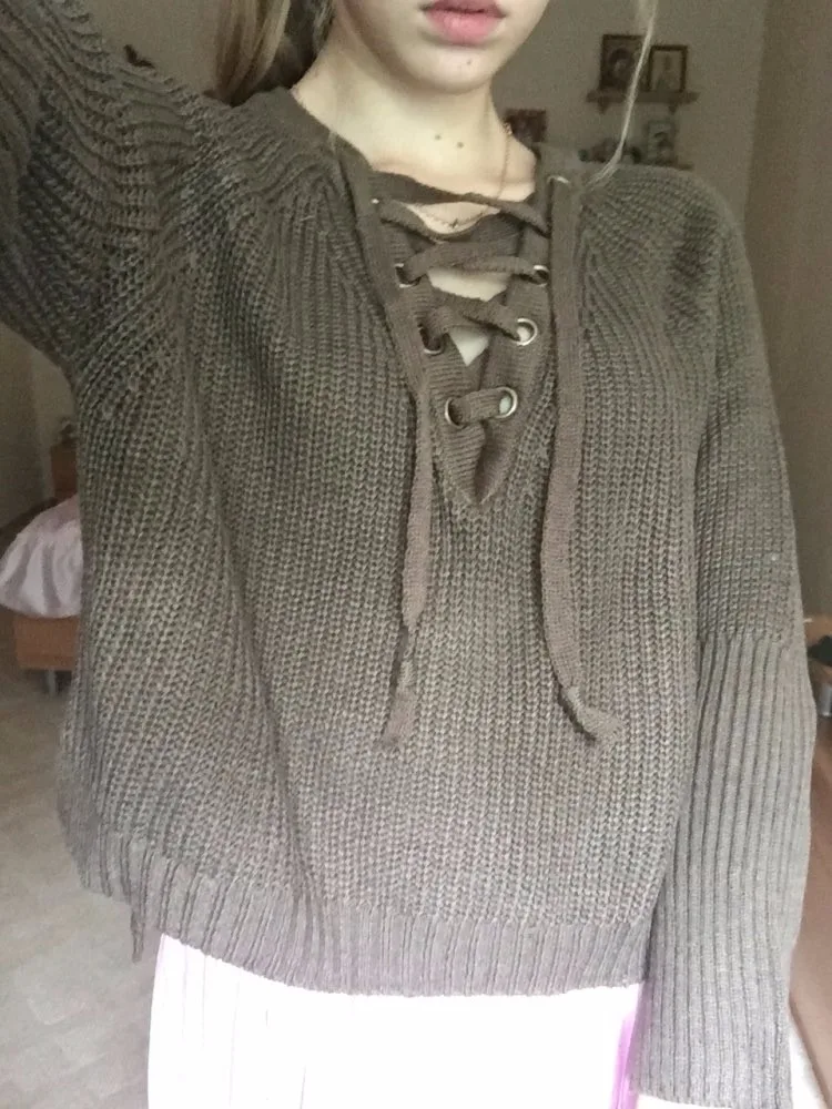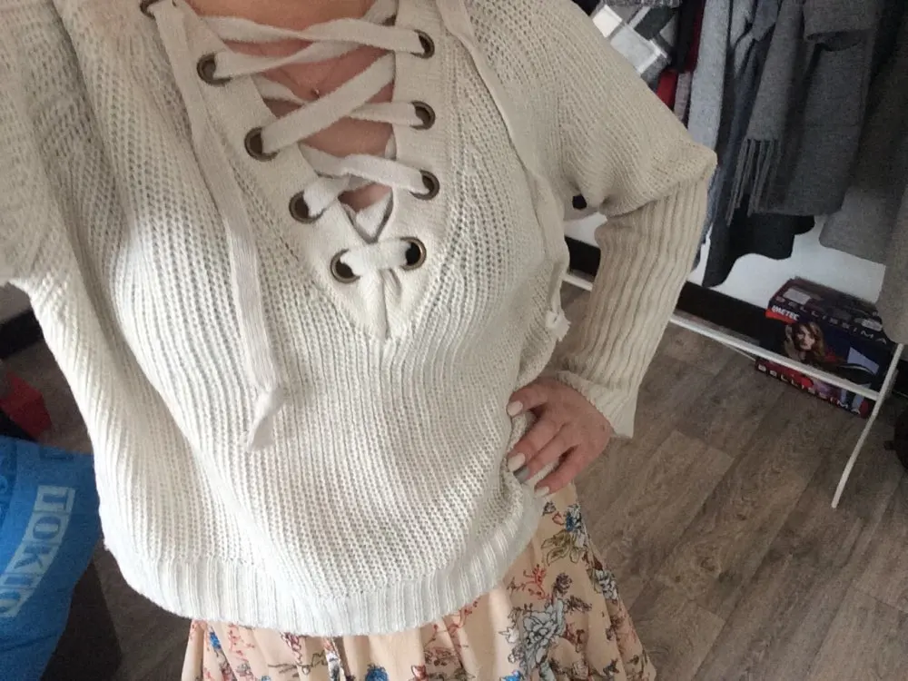 Lovely sweater, it fits well and is comfy on. The front is a bit cropped while the back is longer. The shipping was great for an international package. Thank you!