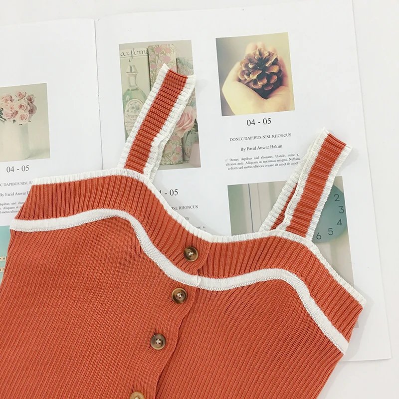 FREE SHIPPING Knitted Tank Shirt Striped Tank Tops Button JKP1397