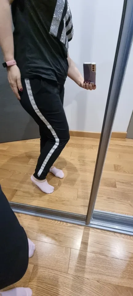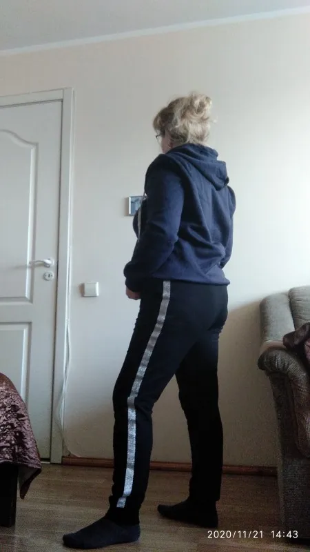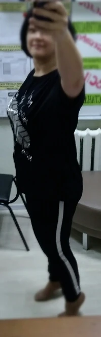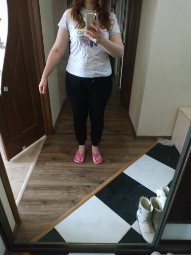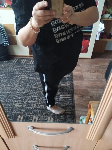 Excellent tight panties, with elastane. They sat down in size, not tight and do not hang, the belt is wide, comfortable. Full length for my height. The composition is declared cotton with elastane. My parameters are height 170 OG 107 from 94 about 112. The quality is excellent. Cool fit in a suit for a gray plush hoodie HM. I'm very happy with the store! I ordered two models, a T-shirt and pants, came in one package for three weeks in Bryansk in five. Thank you all girls for the reviews about the sizes!