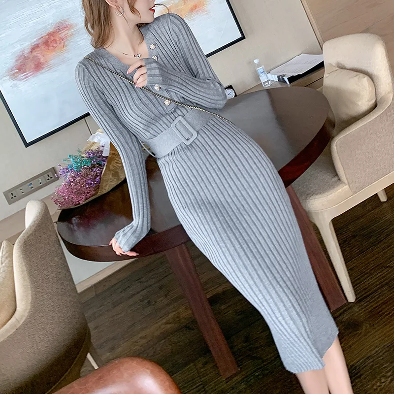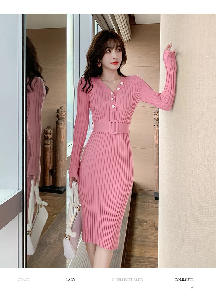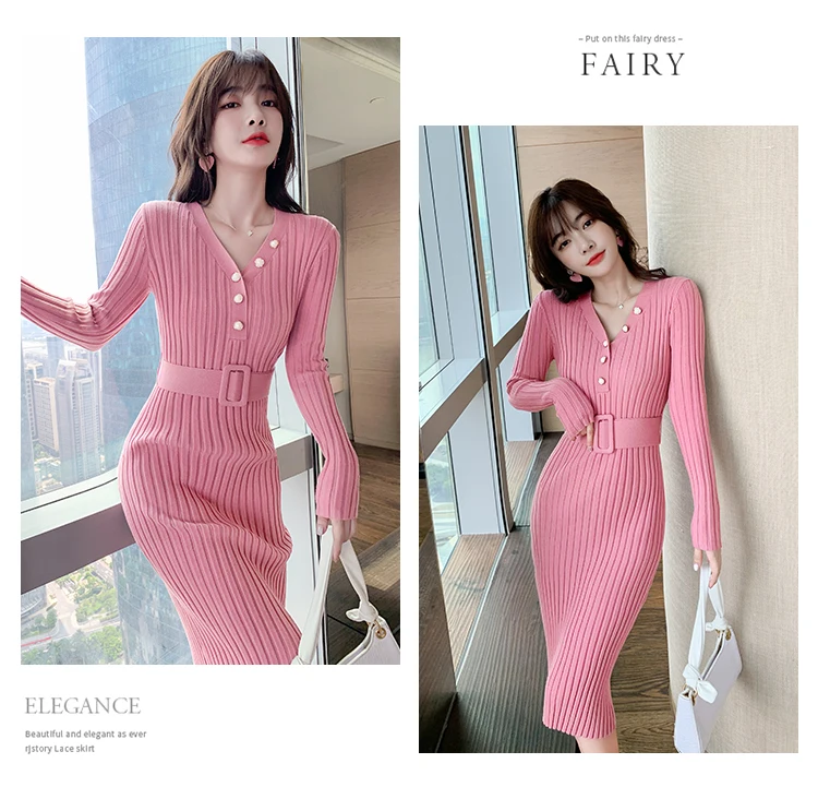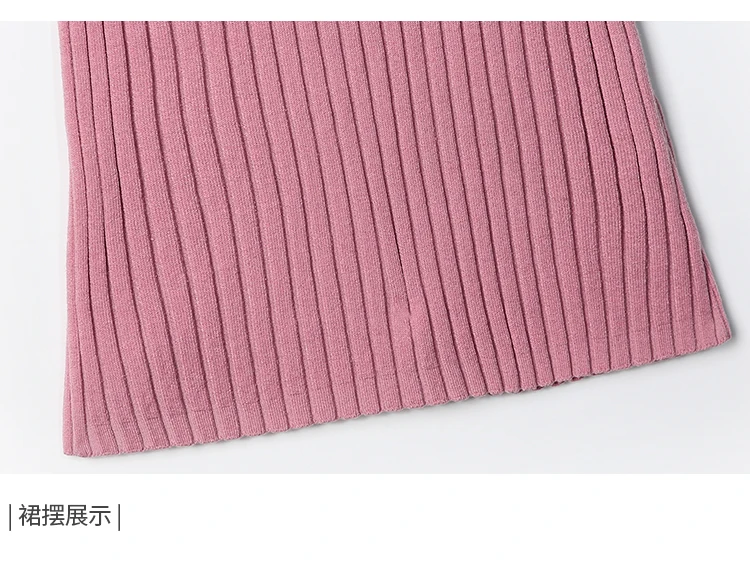 FREE SHIPPING Korean Pleated Sweater Dress Sweet Pink Rib Knit Dresses JKP4854