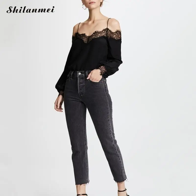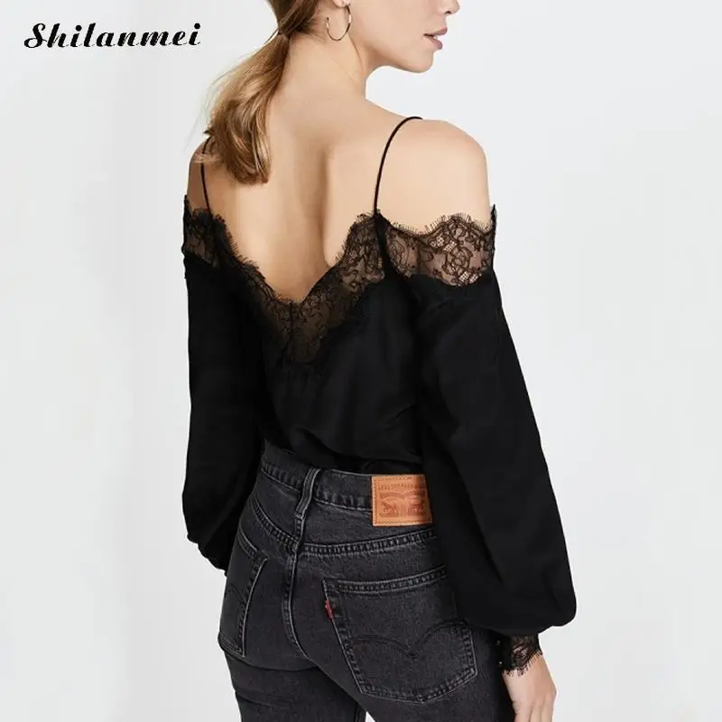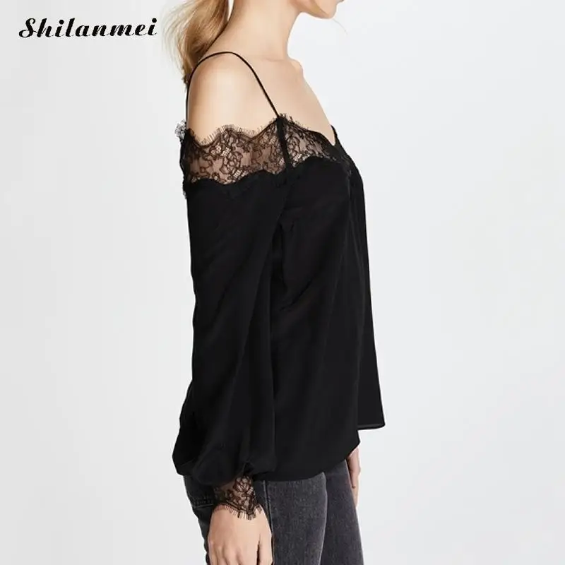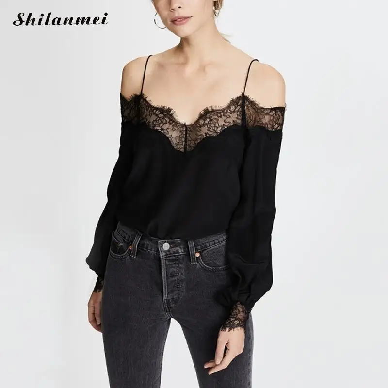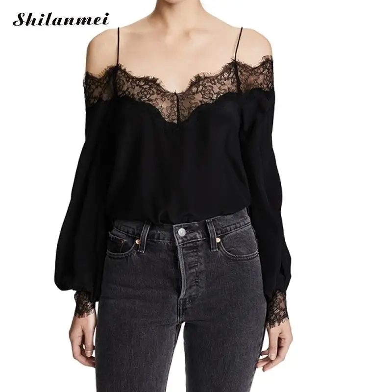 FREE SHIPPING Lace Blouse Slash Neck Off Shoulder Shirts JKP532