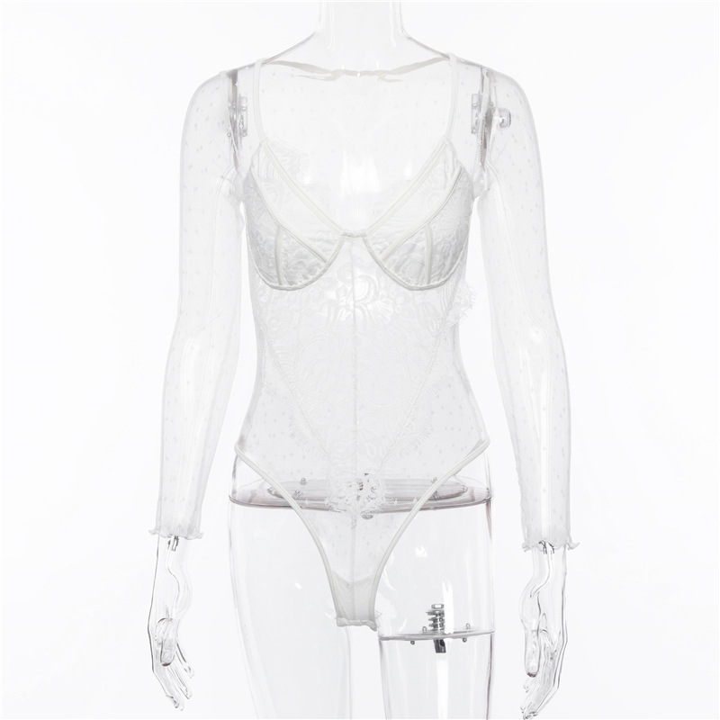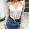 FREE SHIPPING !! Lace Print Long Sleeve V-neck Mesh Bodysuit JKP753