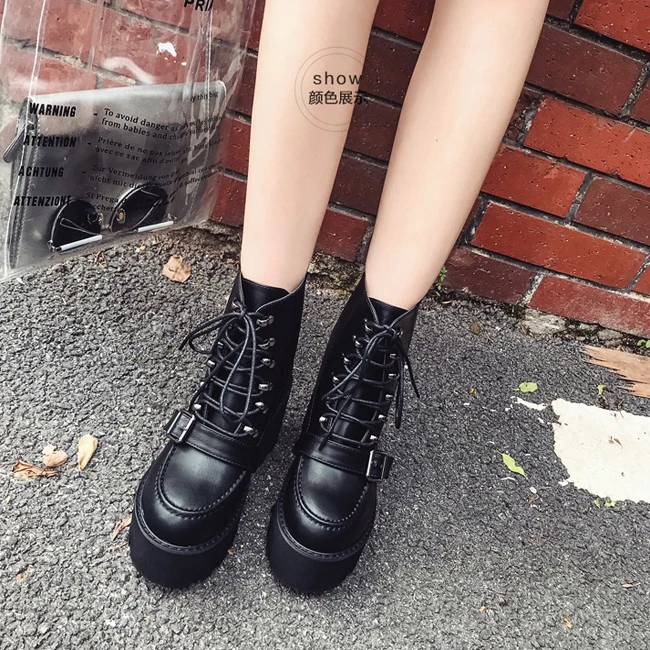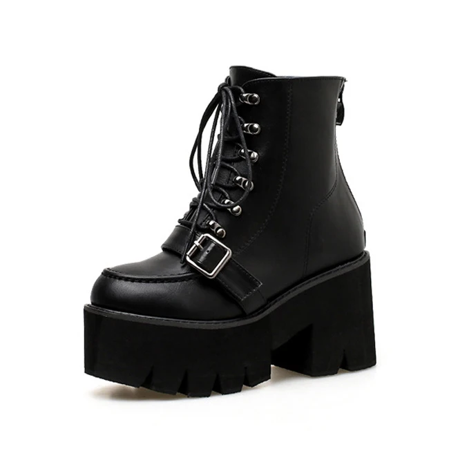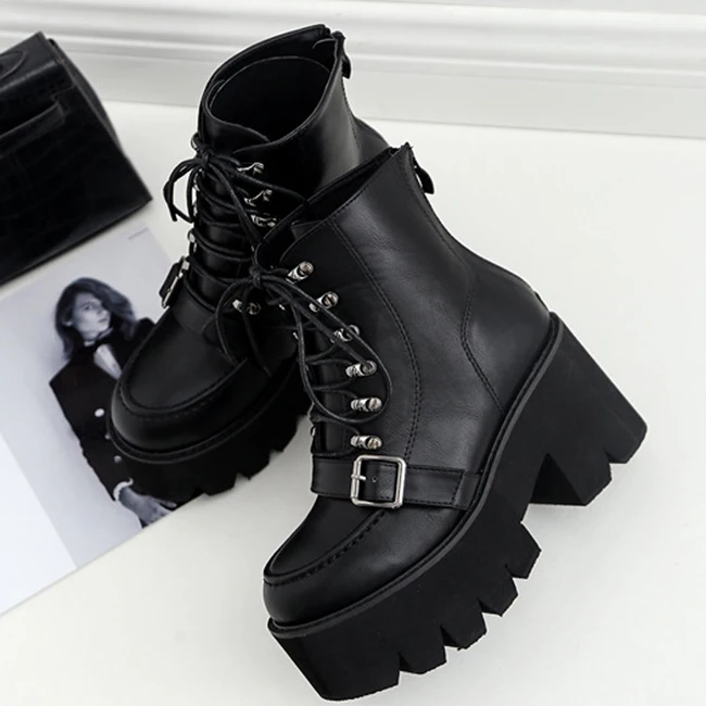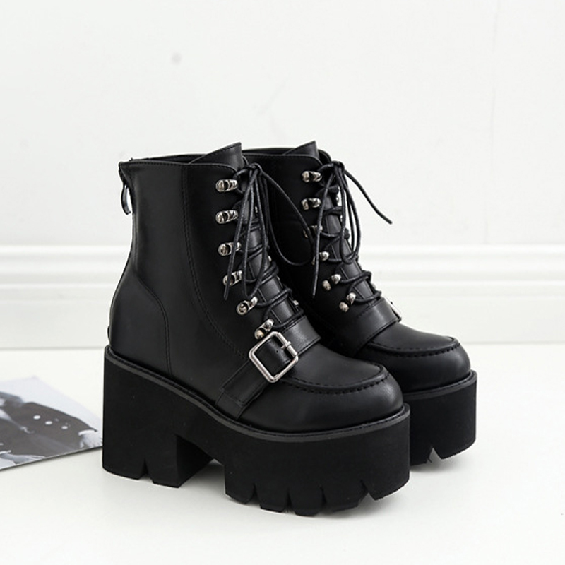 FREE SHIPPING Lace up Boots Women Black Goth Boots Ankle Boots High Heel Martin Boots JKP3786