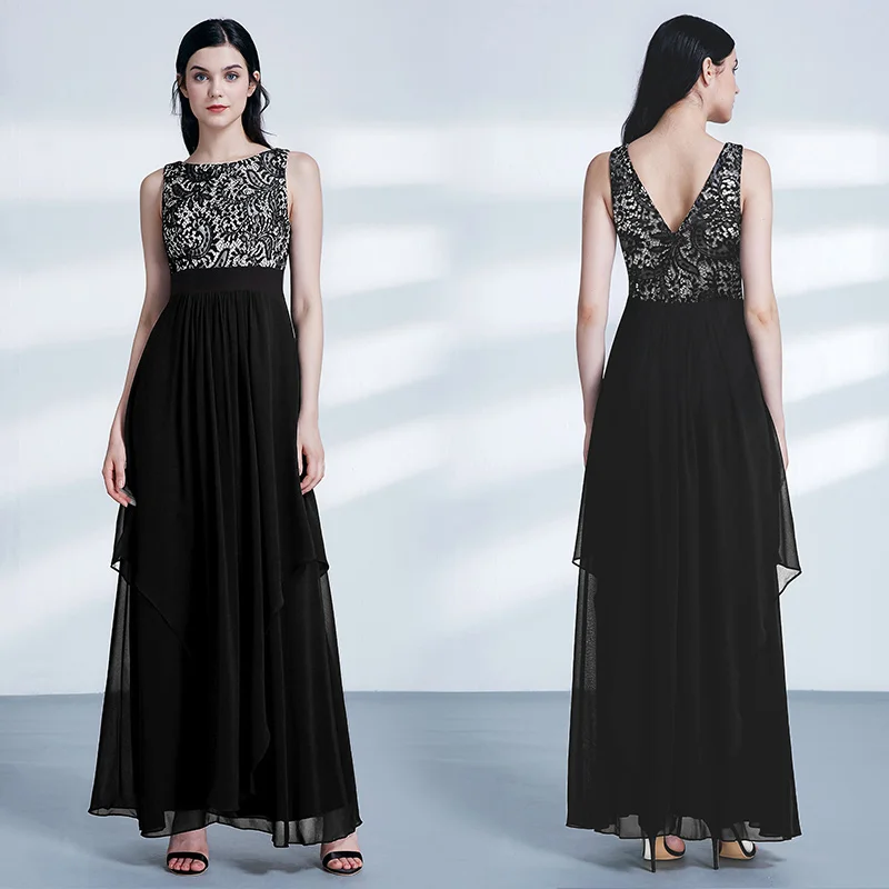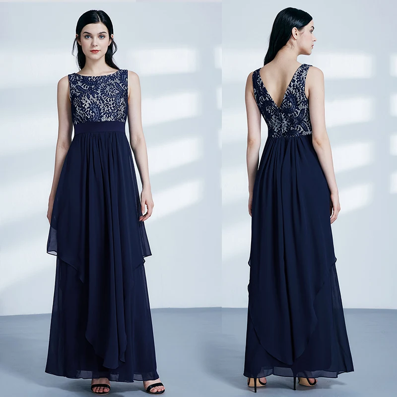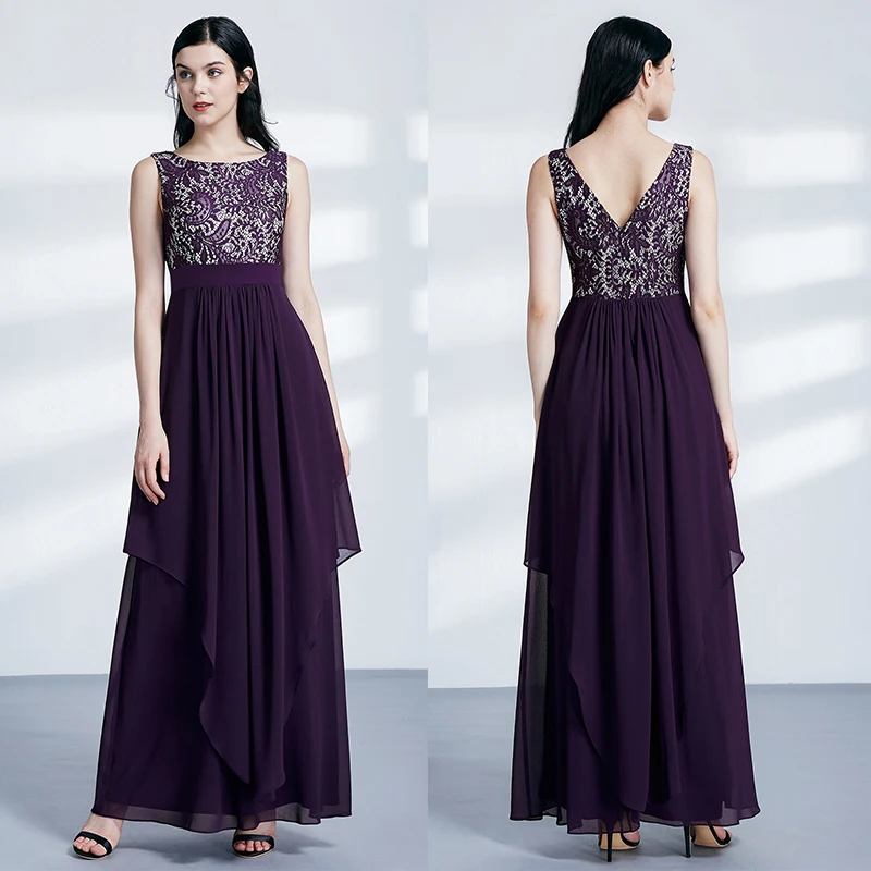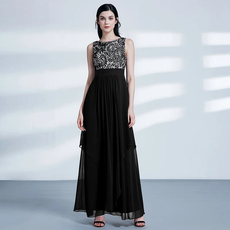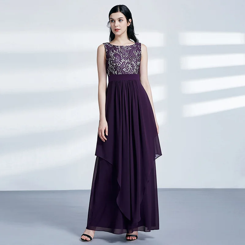 FREE SHIPPING Ladies Evening Dresses Elegant Long Sleeveless O-Neck Chiffon A-line Cheap Lace Holiday Plus Size Party Gowns JKP3001