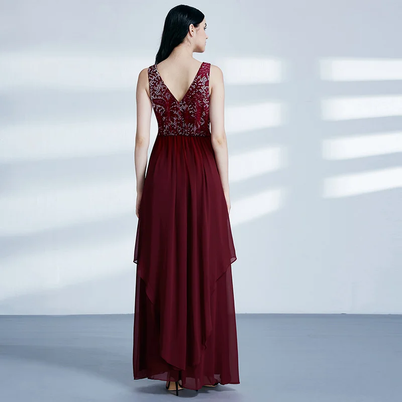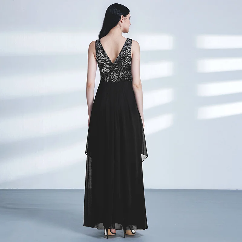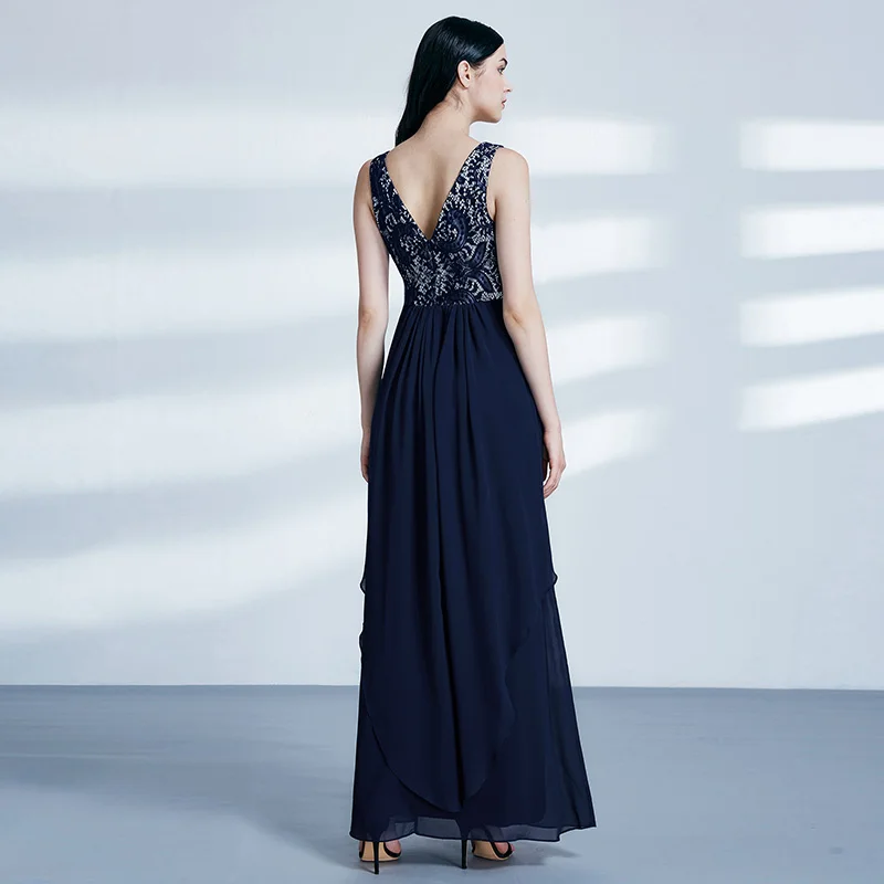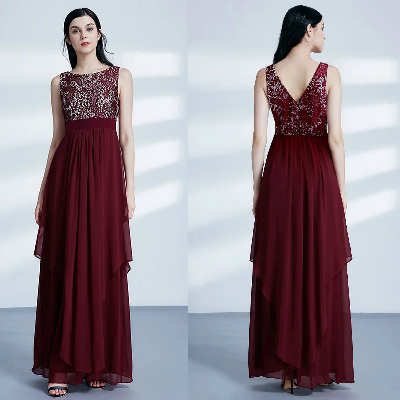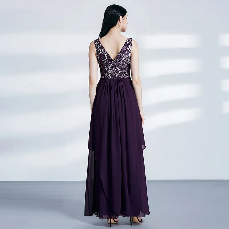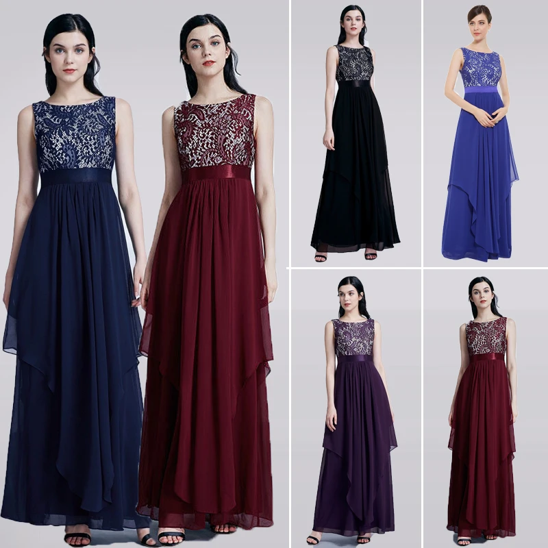 FREE SHIPPING Ladies Evening Dresses Elegant Long Sleeveless O-Neck Chiffon A-line Cheap Lace Holiday Plus Size Party Gowns JKP3001