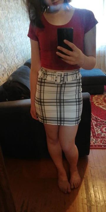 This is my first win in free) skirt came quickly, for about a month. Sewn very well, all the seams are smooth. To the touch is a very pleasant fabric, in which polyester-, 95% and spandex-5%. Stretches very well, at first worried that i was sent the size of xs, thought that on my parameters-67/94-it will be small, but it came very well, does not even hamper the movement. Packed well, in a branded bag. Thank you very much to the store :)