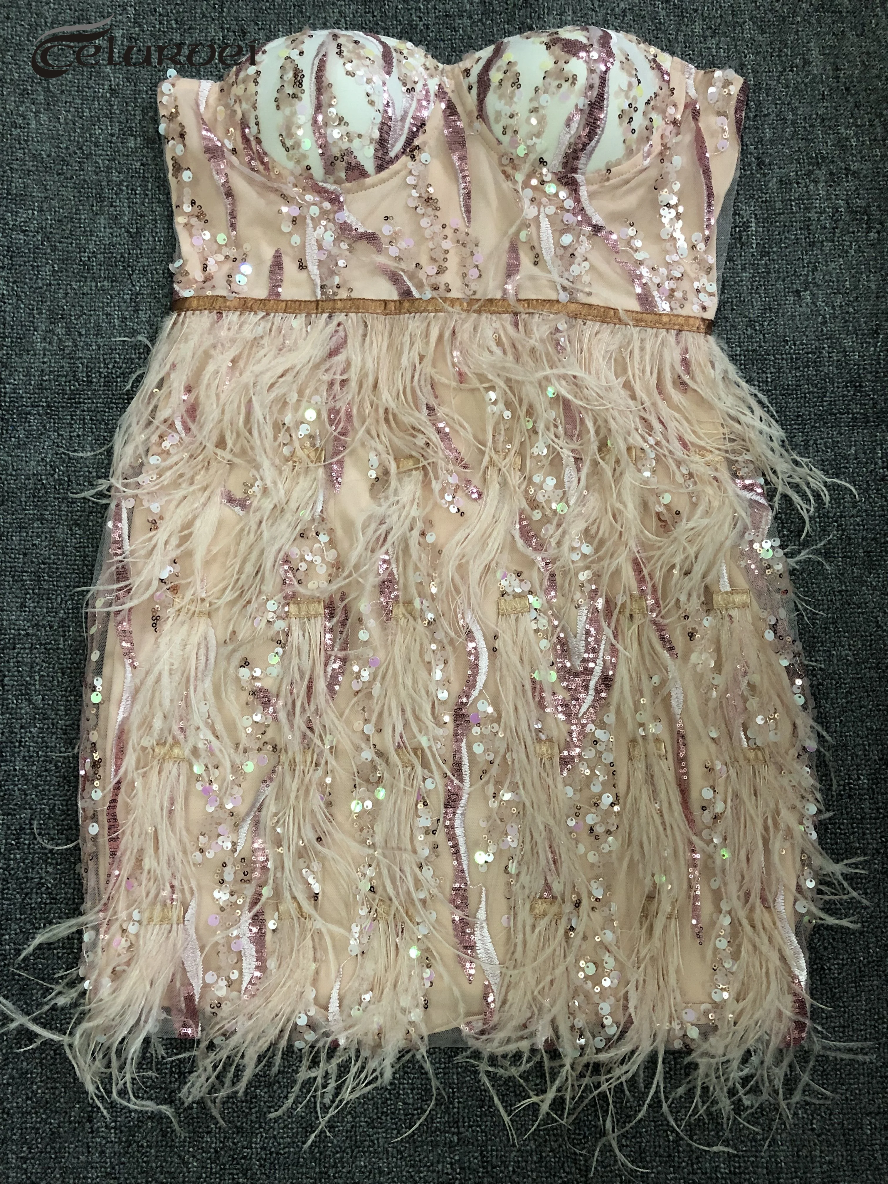 FREE SHIPPING Laila Pink Sequin Feather Mini Dress JKP4835