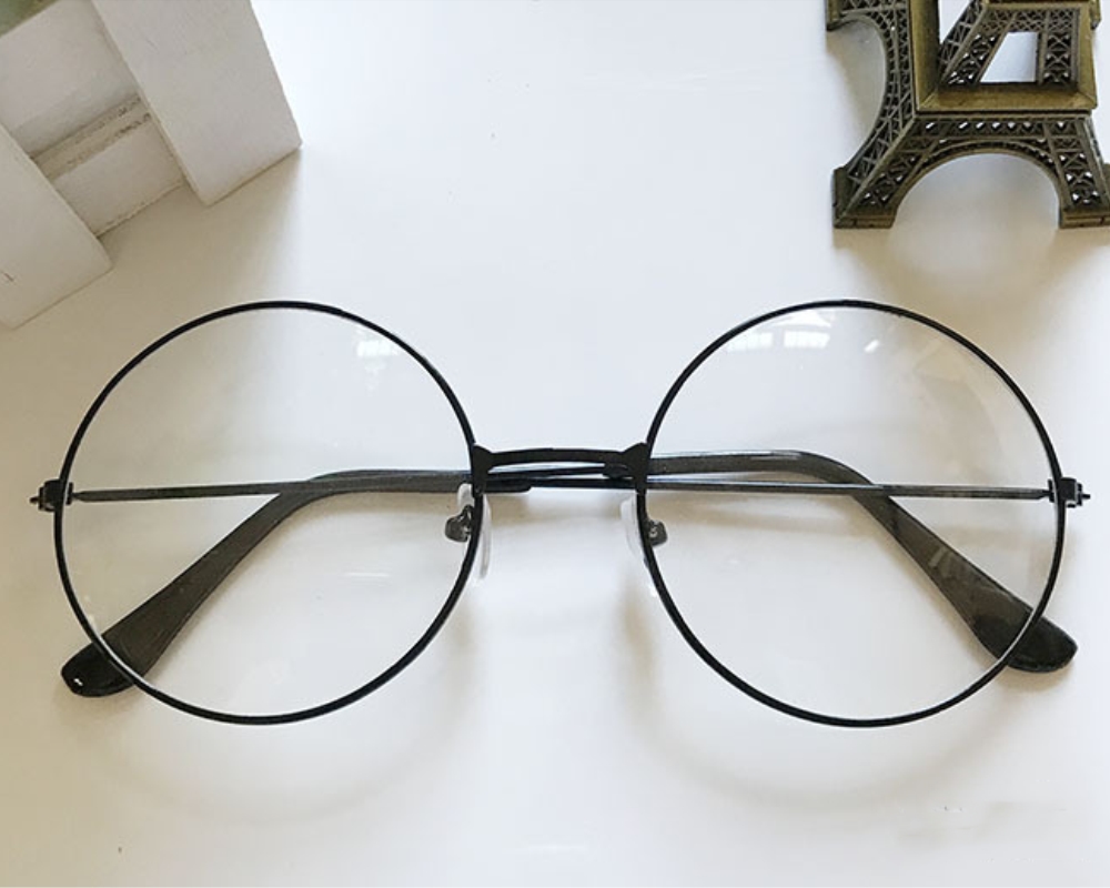 FREE SHIPPING Large Round Glasses Transparent Metal Frame Black Silver Gold JKP1327