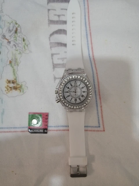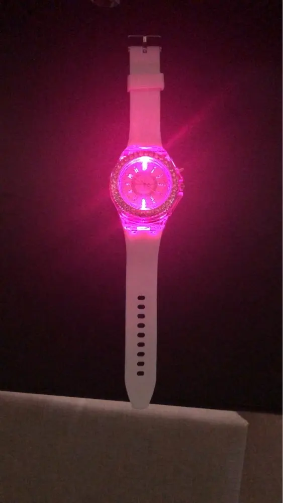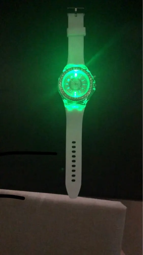 Watch keeps accurate time thus far. Nice watch face. The light flashes in different colors when you push a button. Fun to give as a gift. Thank you!
