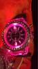 this watch looks very nice. Looks exactly like the picture. But when you press the button it flash multiple colors. So no you can not set your watch to a specific color.How long it will work, I don't know . Will keep and touch