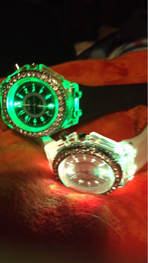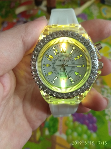 Everything corresponds to the description, glows and all strasses around the dial in place and are glued perfectly smoothly. Look very cute. Delivery is fast, to the moscow region the clock arrived in 14 days. I recommend the store, i will order more.