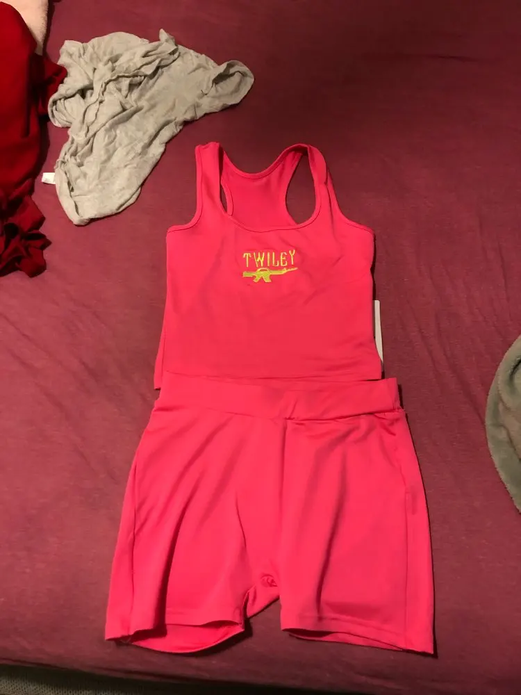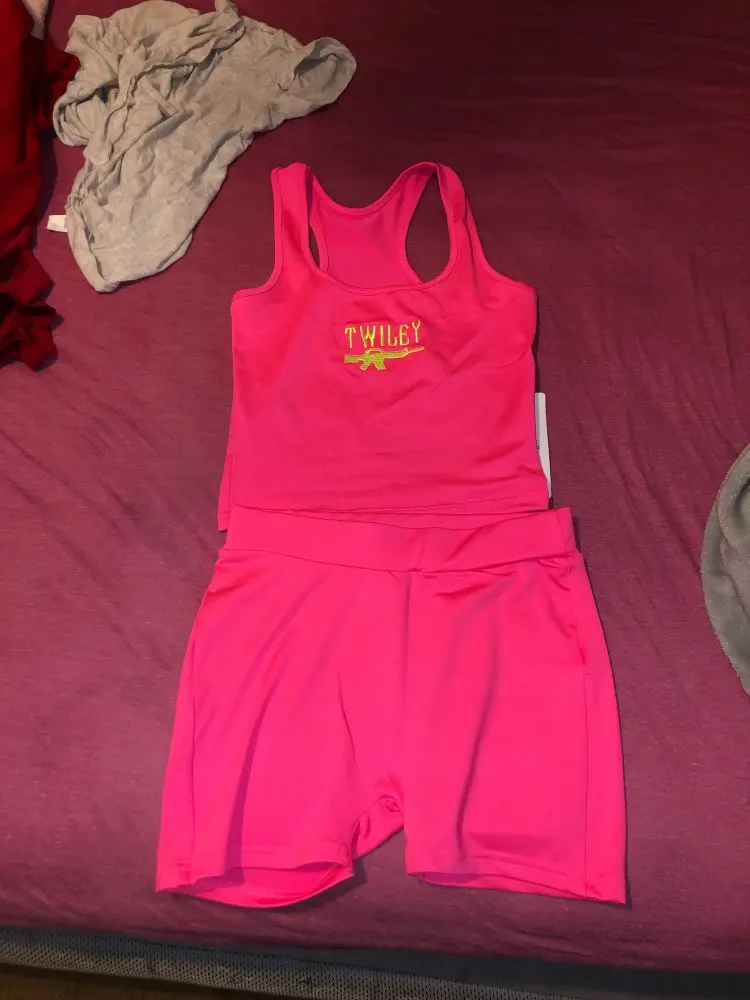 FREE SHIPPING Letter Embroidery 2 Piece Set Women Casual Neon Color Tracksuits Summer Streetwear Crop Top And Shorts Sets JKP3484
