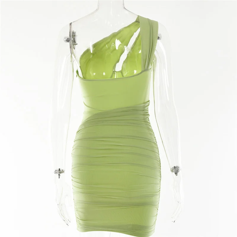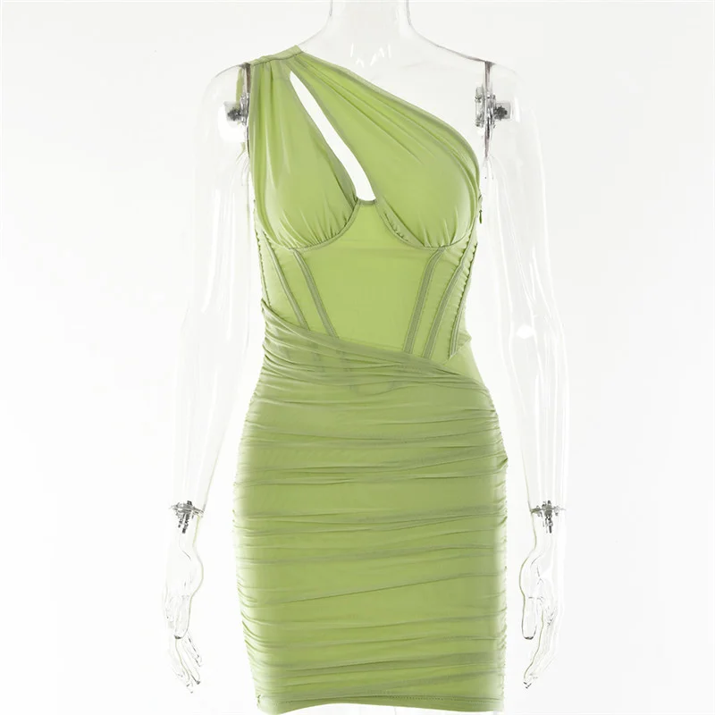 FREE SHIPPING Lime Cut Out Mini Dress Double Layer Mesh Bodycon Mini Dress JKP5868