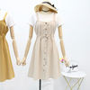 FREE SHIPPING !! Linen Cotton Waist Straps Sleeveless Strap Dress JKP479
