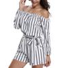 FREE SHIPPING Long Sleeve Off Shoulder Striped Jumpsuit JKP888