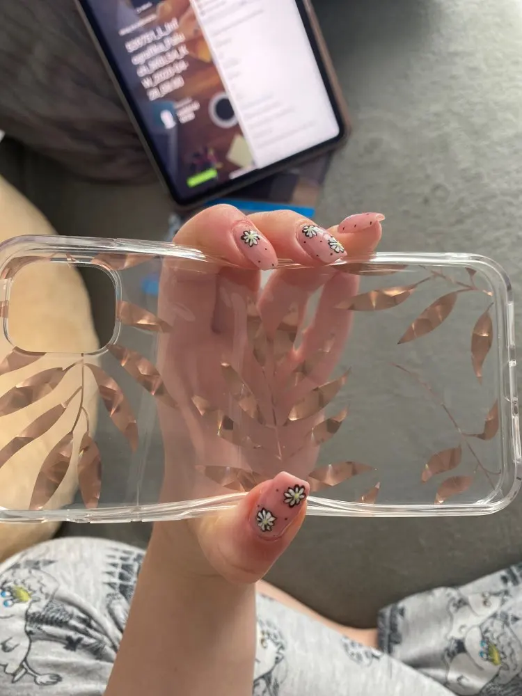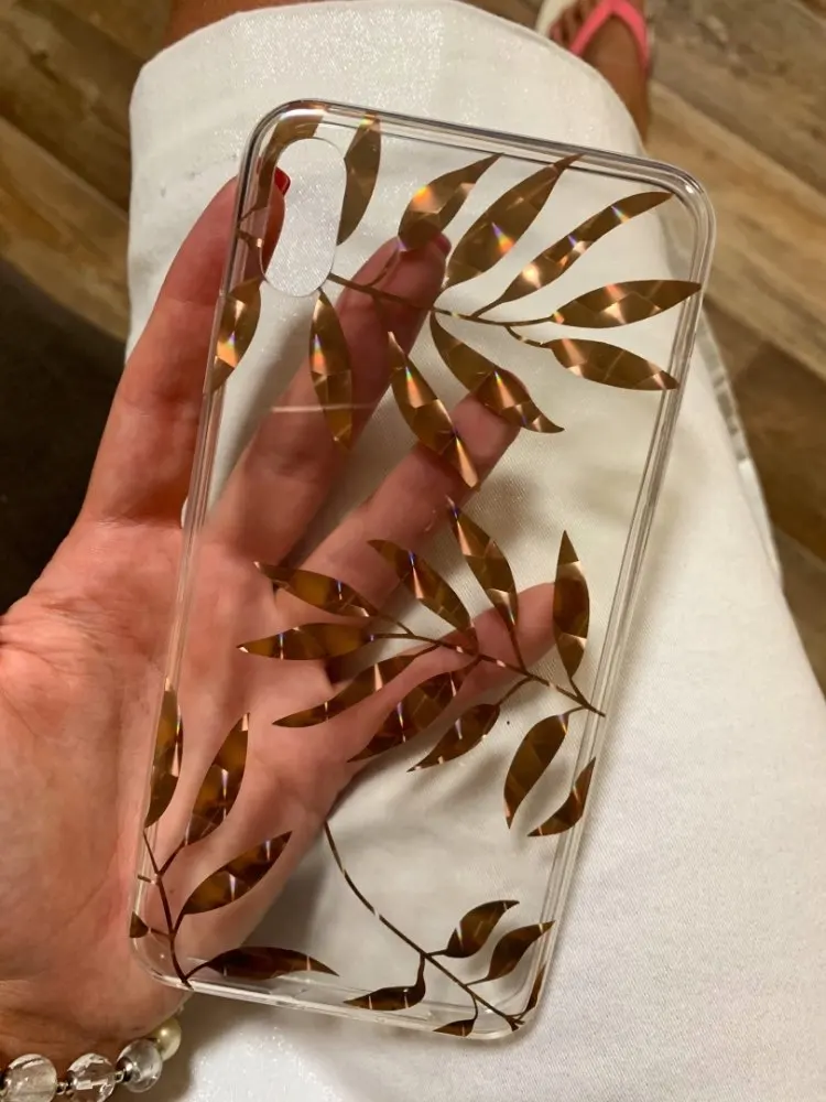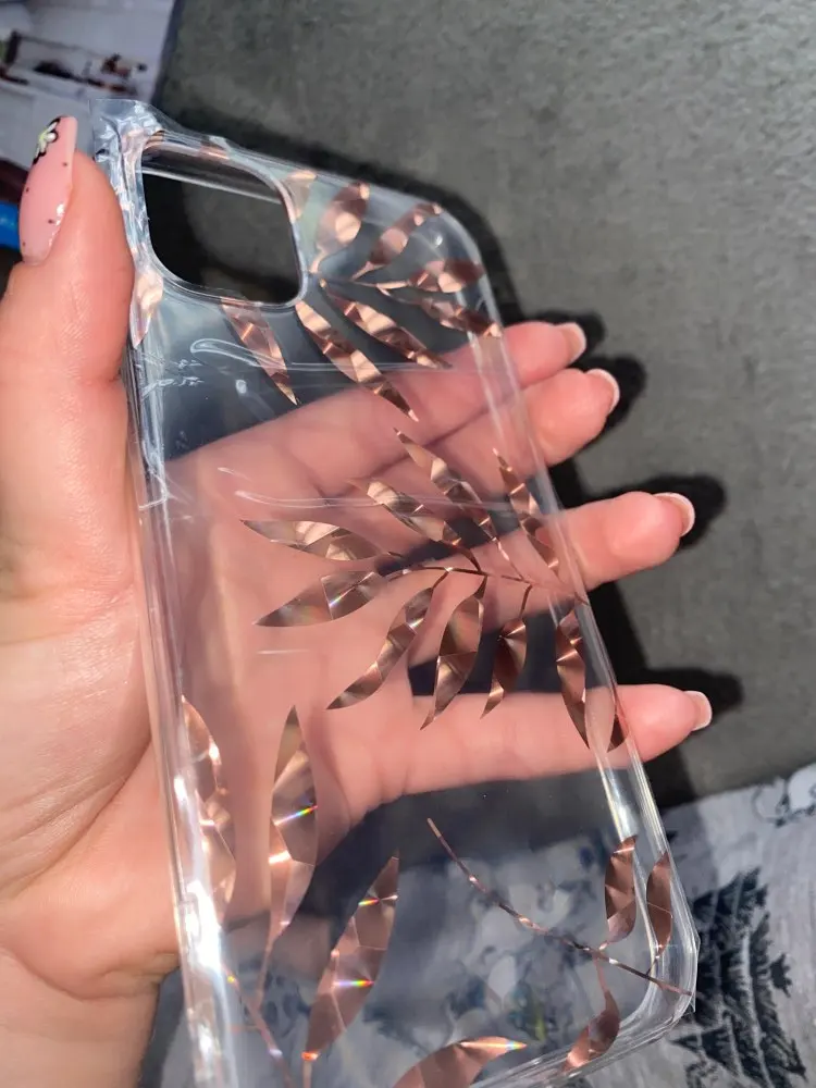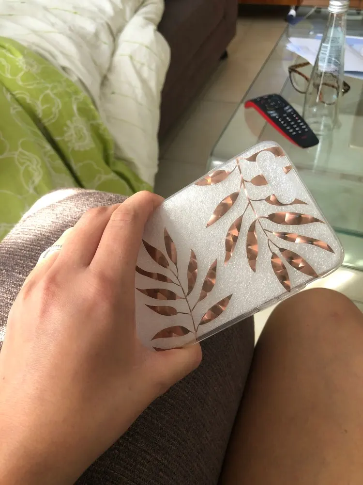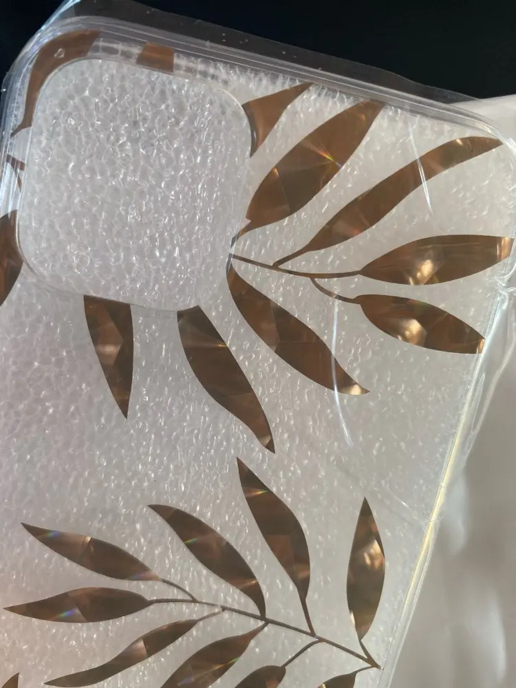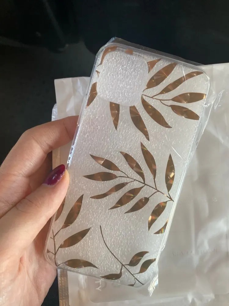 Case came to me after 1,5 month. Is exactly as the description. Made of thick plastic, decorative leaves very nicely shimmer in the sun, additionally SA secured wrap. Brim case are made of hard rubber, with this case it is easier to insert the phone. Not spodziewałam up as good quality. Highly recommend!