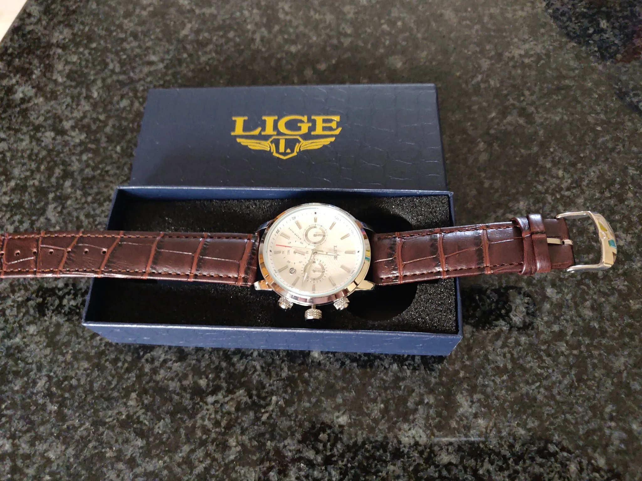 This is my 3rd LIGE watch and i was attracted to buy it because of the leather strap. It took 40 days to arrive but it's okay as long it has arrived. The best way to buy is by registered post better pay a little bit for the postage to be sure to receive it. I expected the face of the watch to be bigger just like the others but it wasn't. Well, a different style I guess. When I opened the watch box i found it working already. Very neat elegant watch for men. Highly recommend the SELLER. Thank you