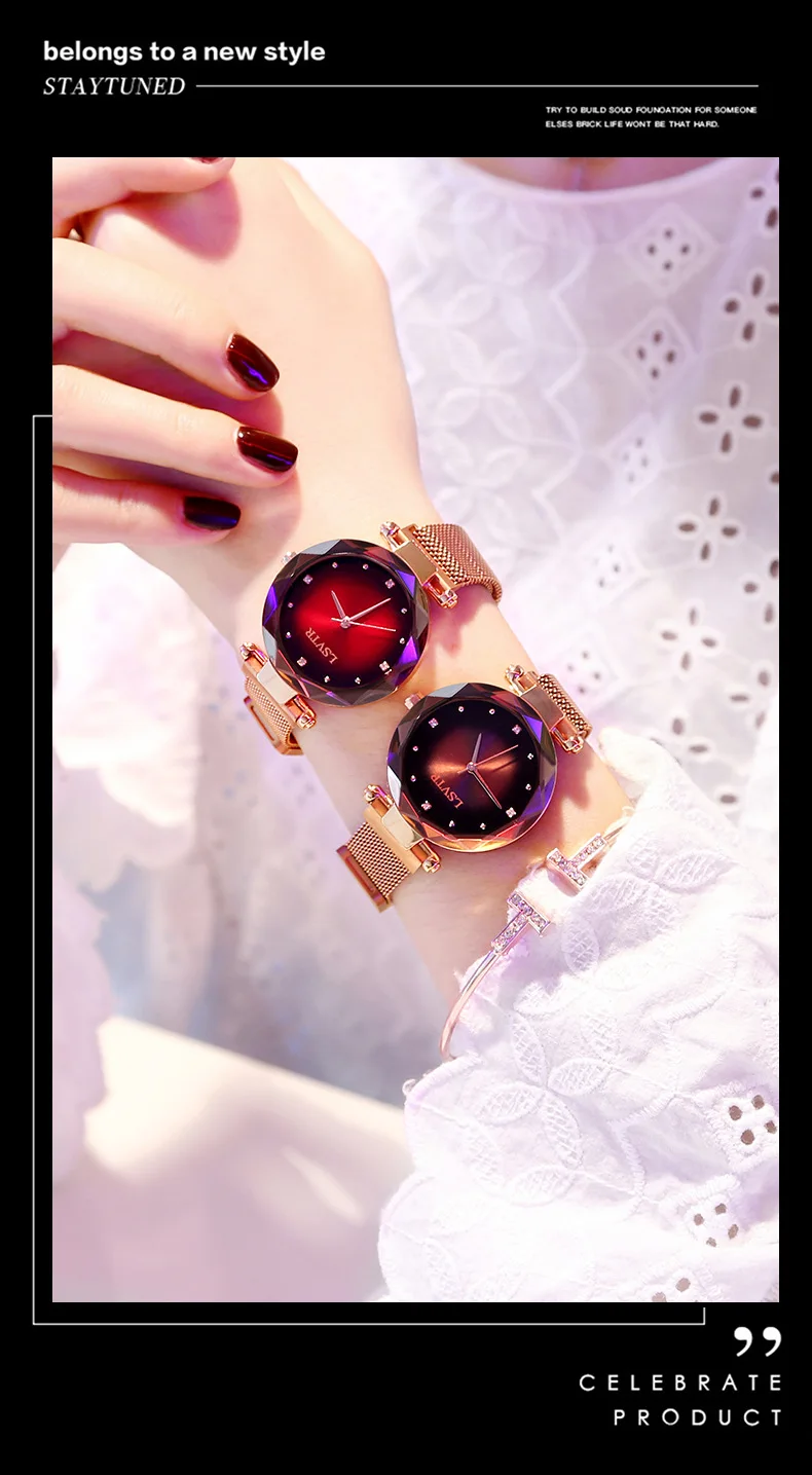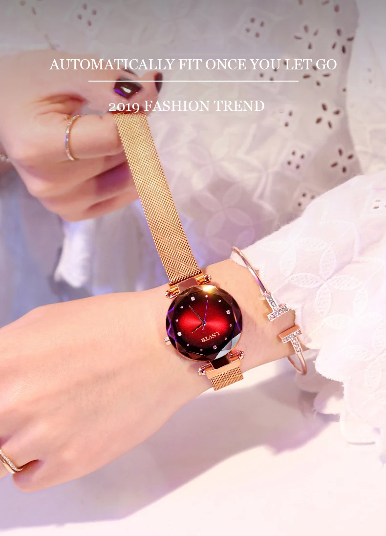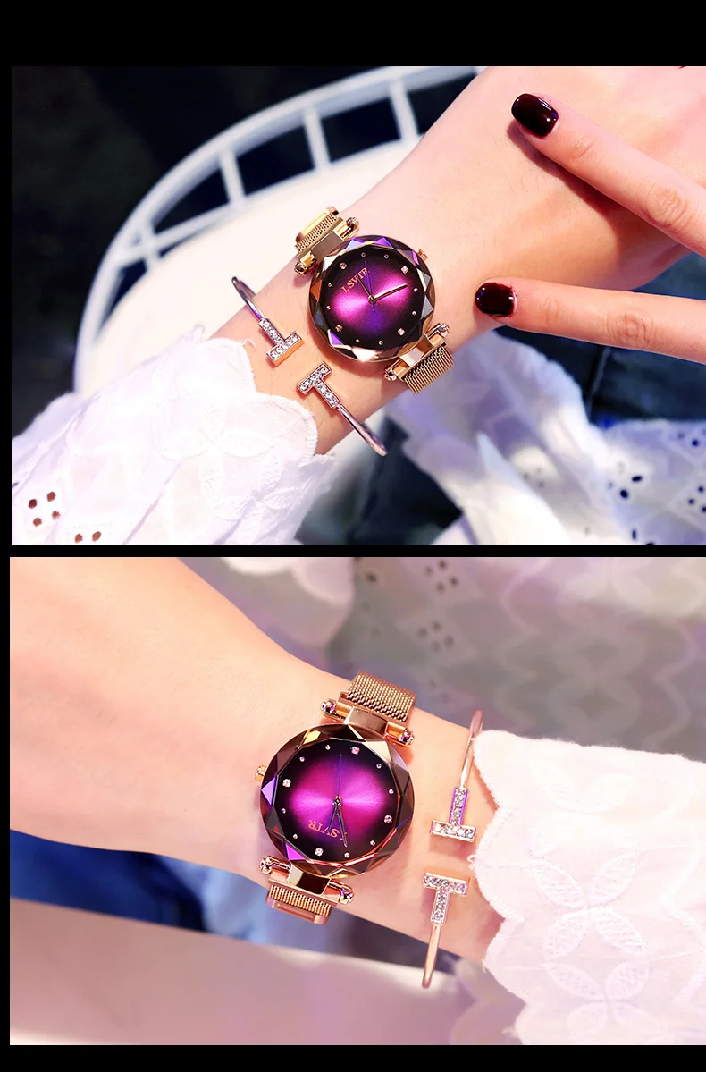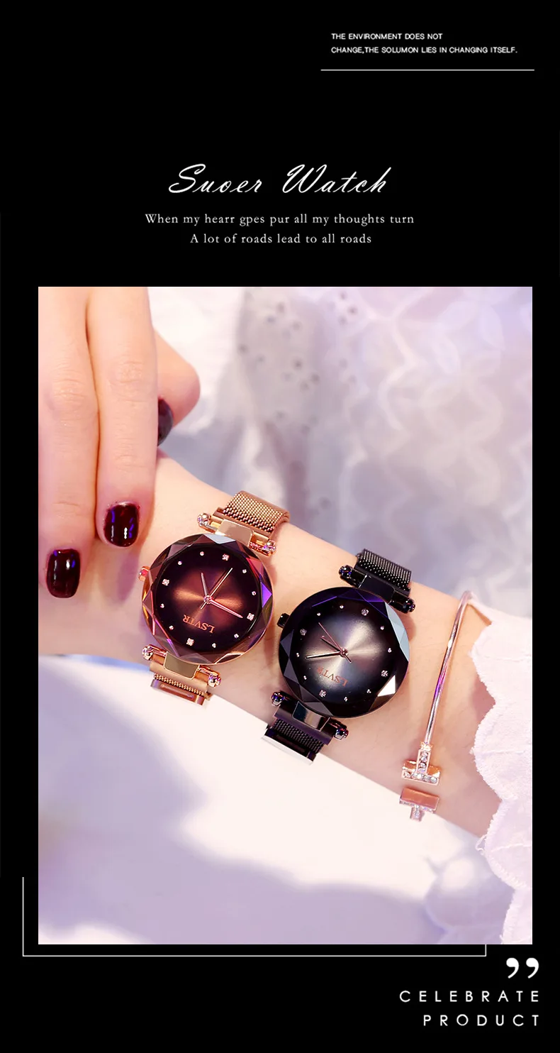 Delivered very quickly. 18 days. In mezhdurechensk. Simpotichnye watch. Bracelet color dark gold. The magnet holds tight, does not fly off.