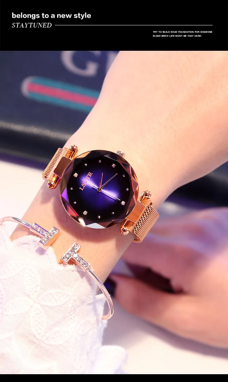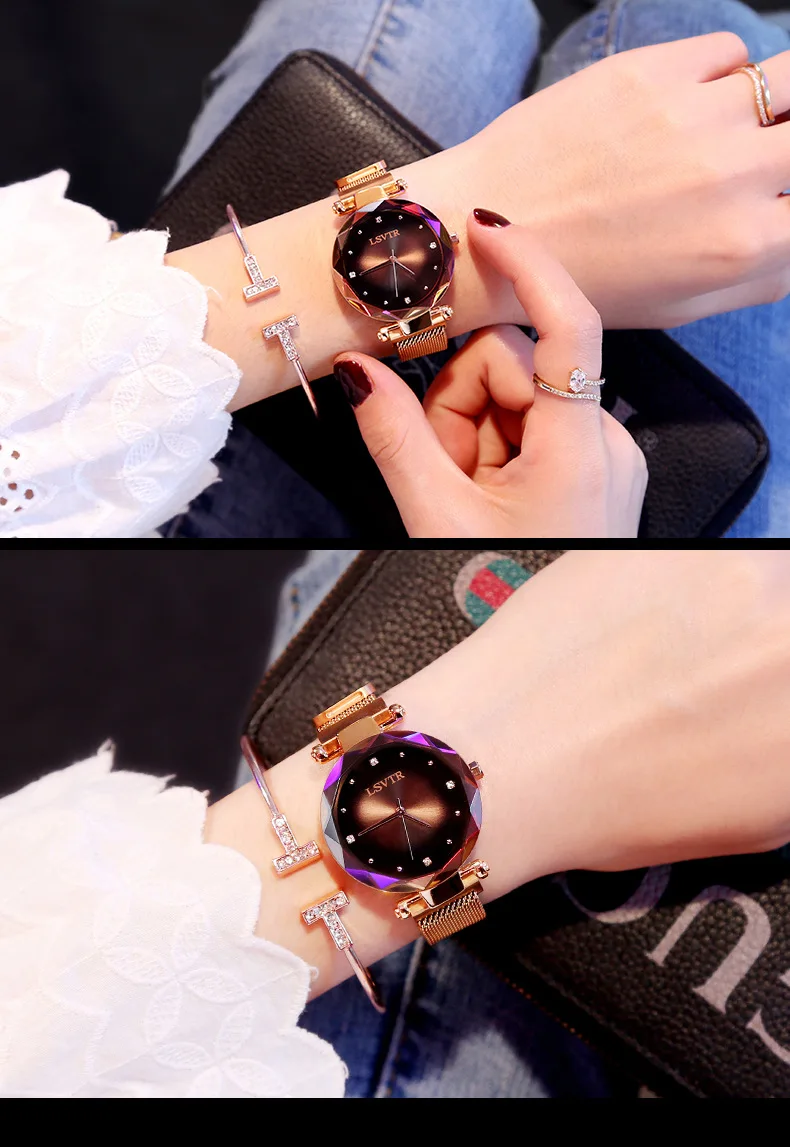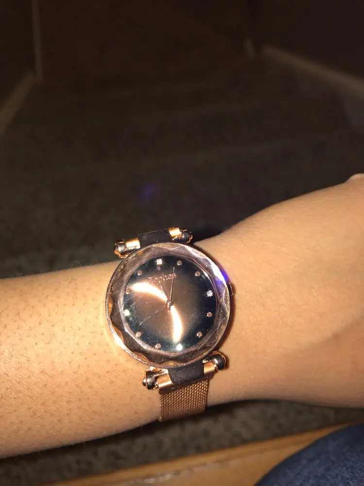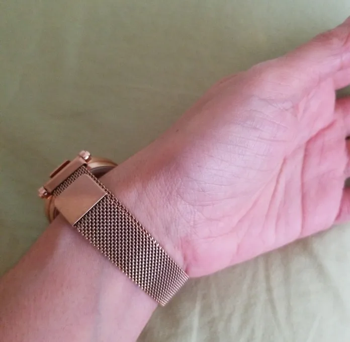 I didn’t know it was magnetic! I LOVEEEEEE it even better once I realized it was magnetic because it sooooo easy to wear and adjust compared to a regular strap. Plus you don’t have to have any extra flap flying around. I didn’t take a good photo but this watch in person is beautiful