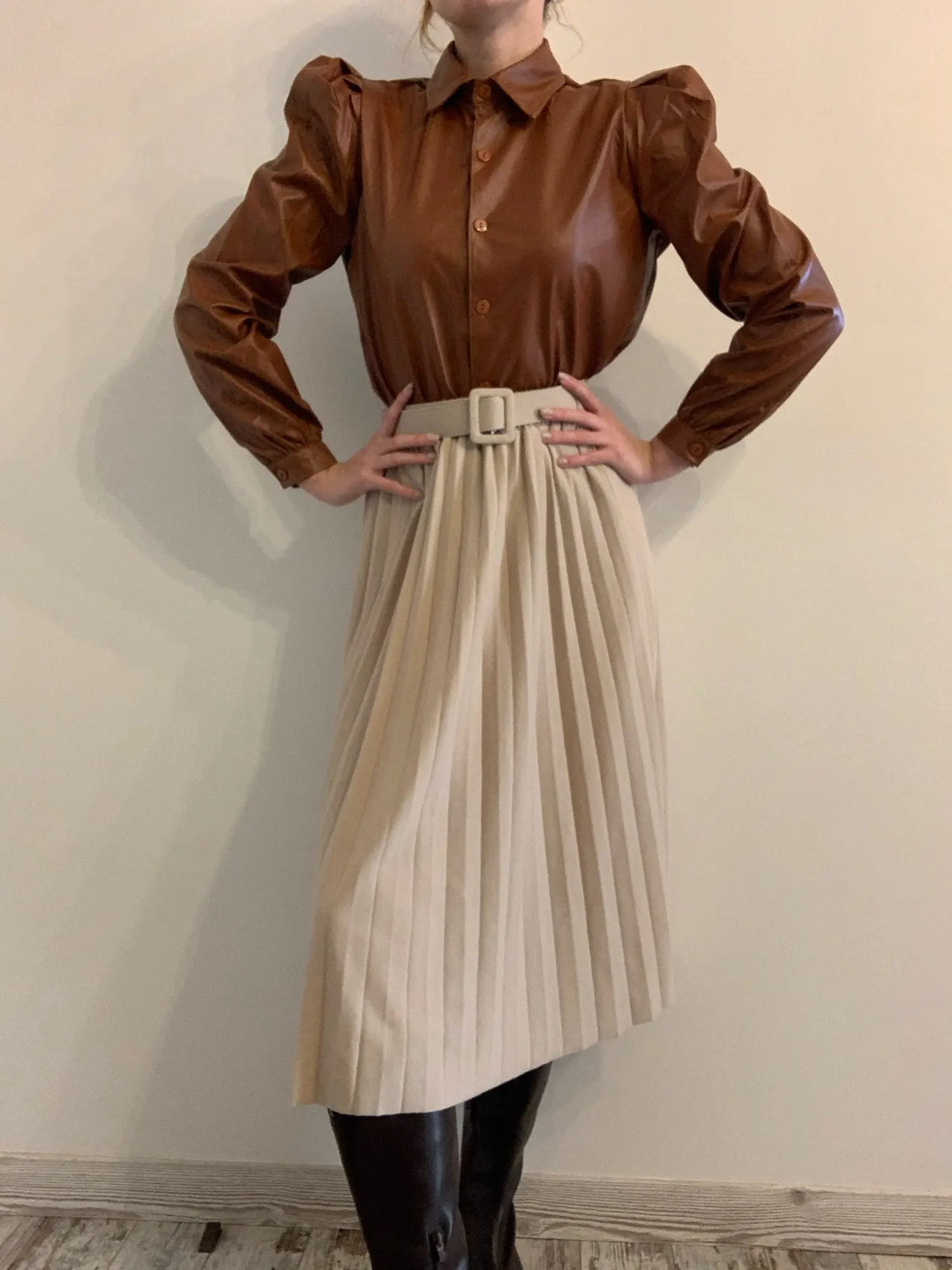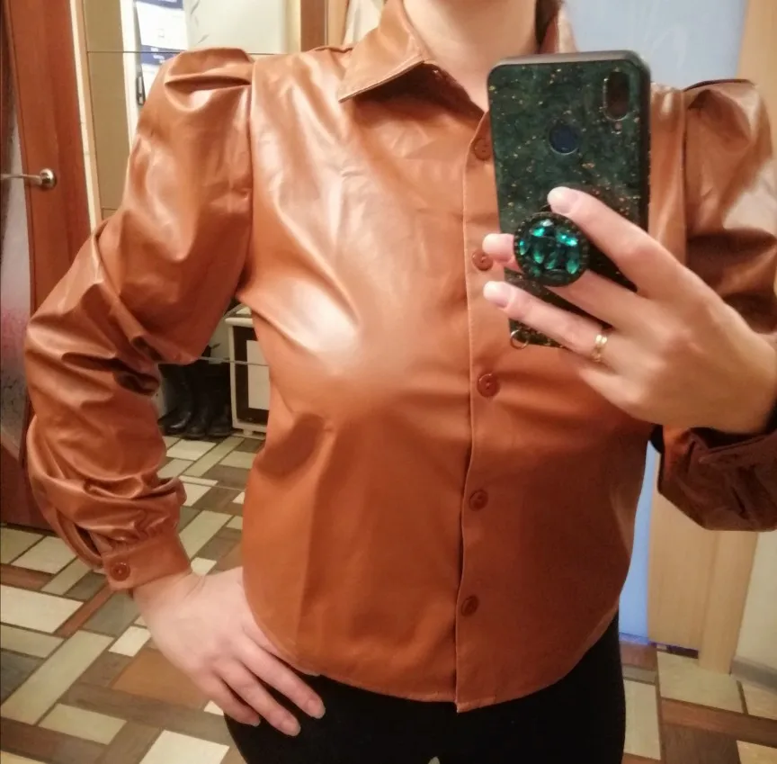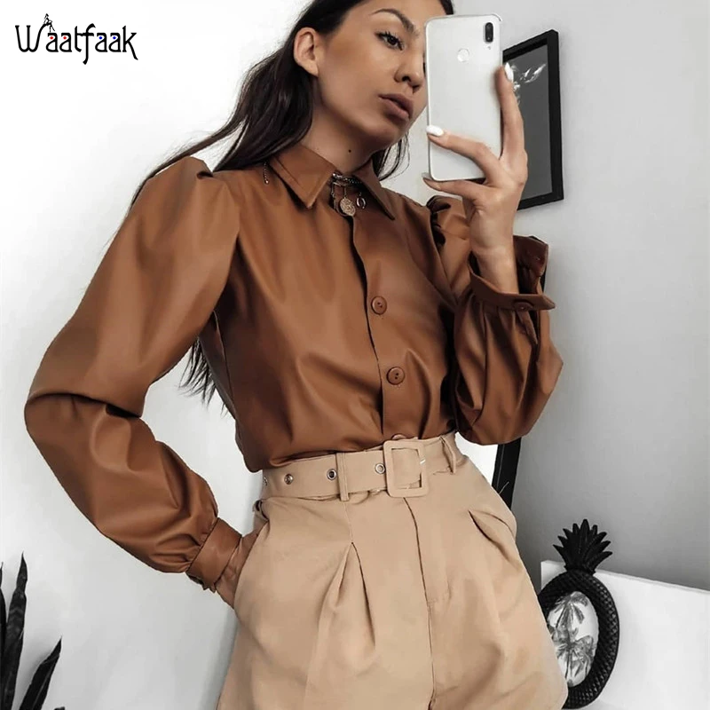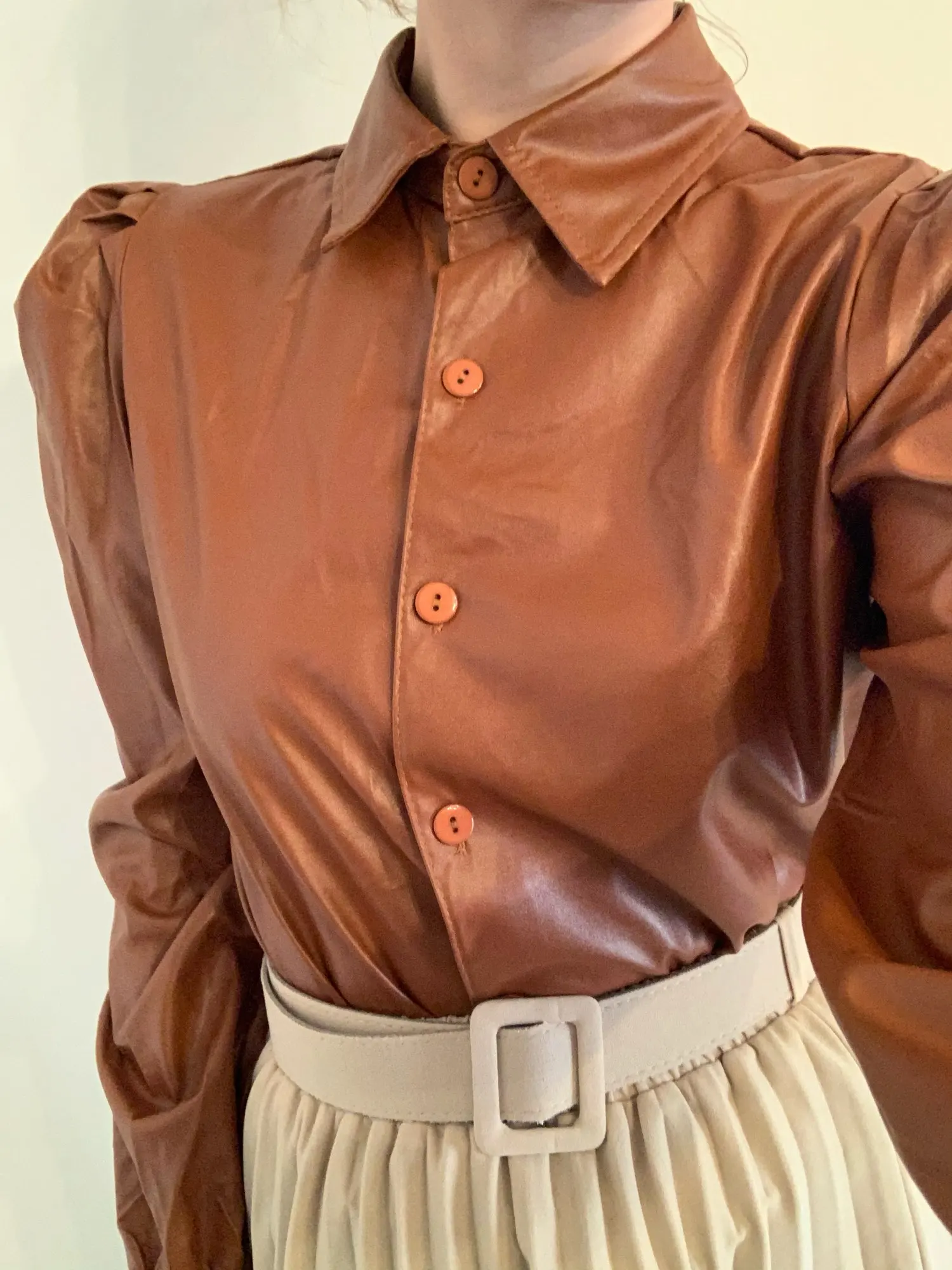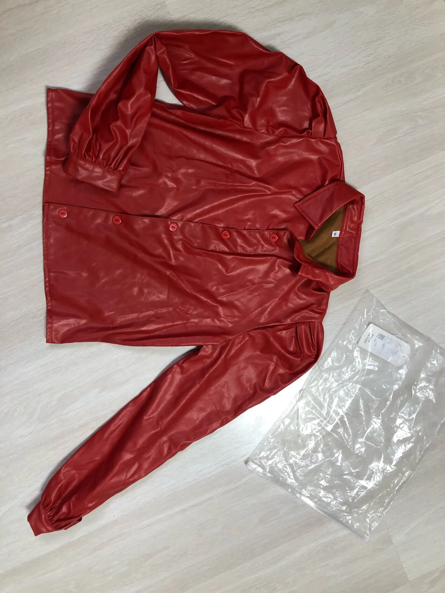 FREE SHIPPING Luxury Vintage Leather Blouse JKP4460