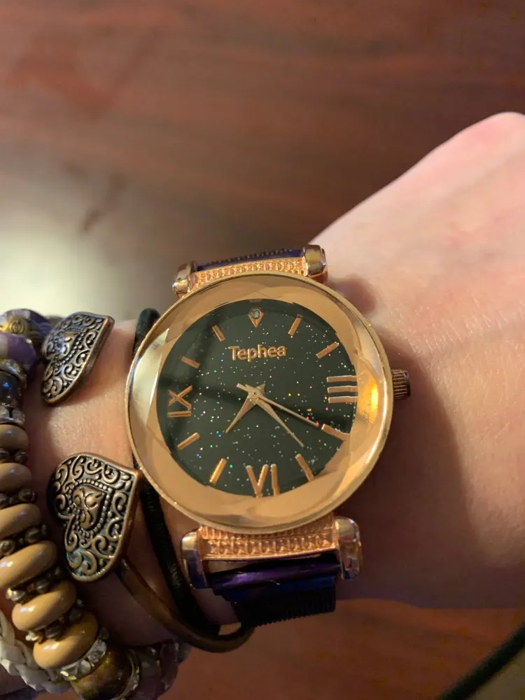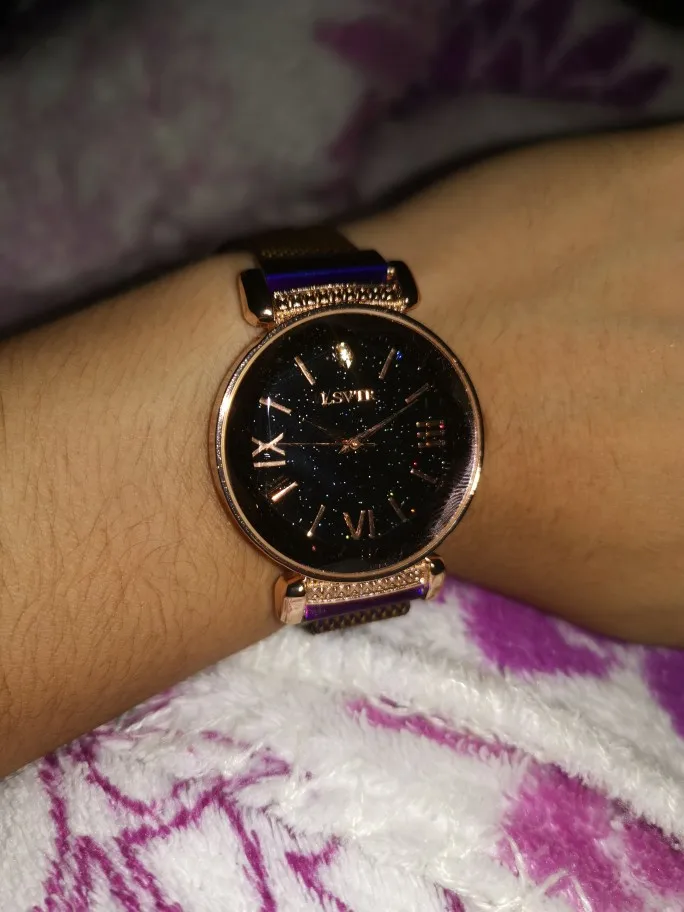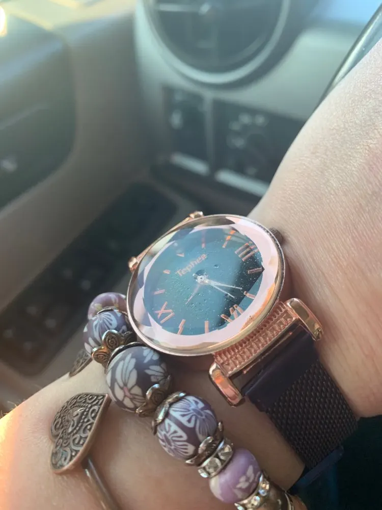 Love this watch! It exceeded my expectations!! Love the glitter on the back screen and how the band is easily adjustable and magnetic! It is one of the most beautiful watches that I have ever seen!