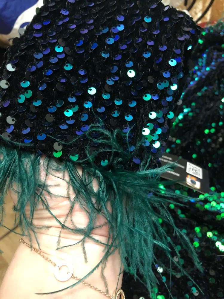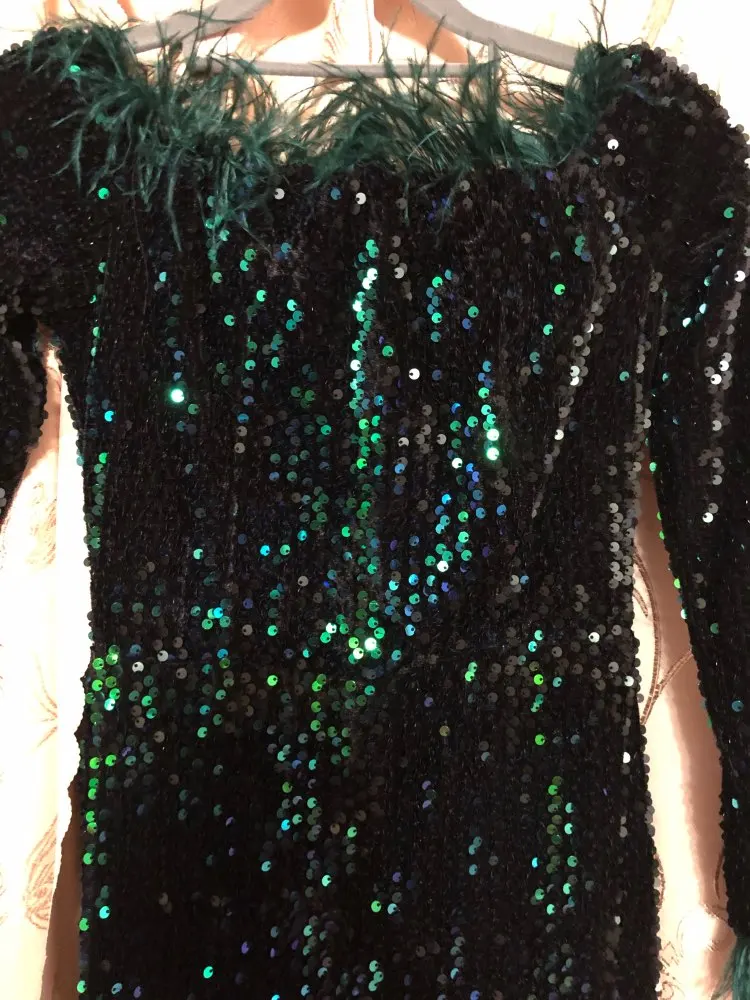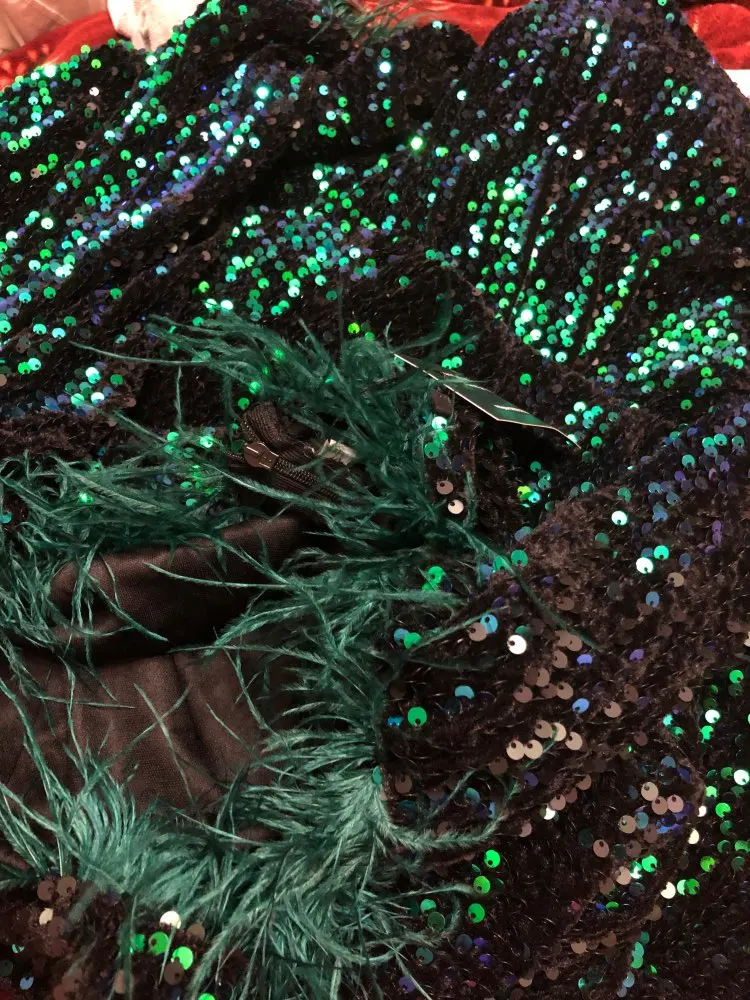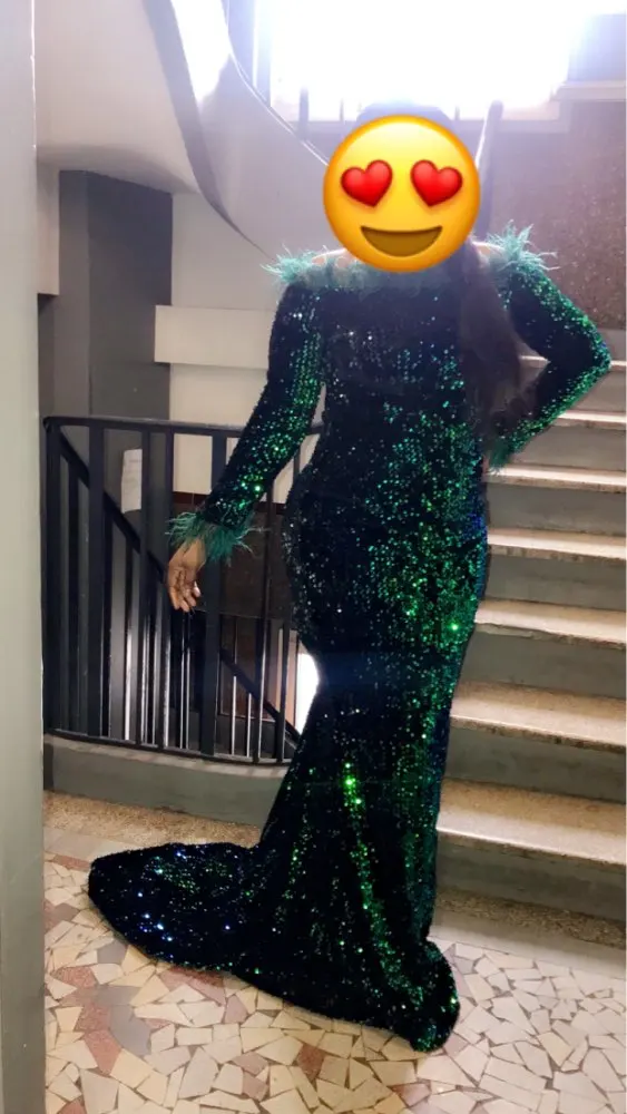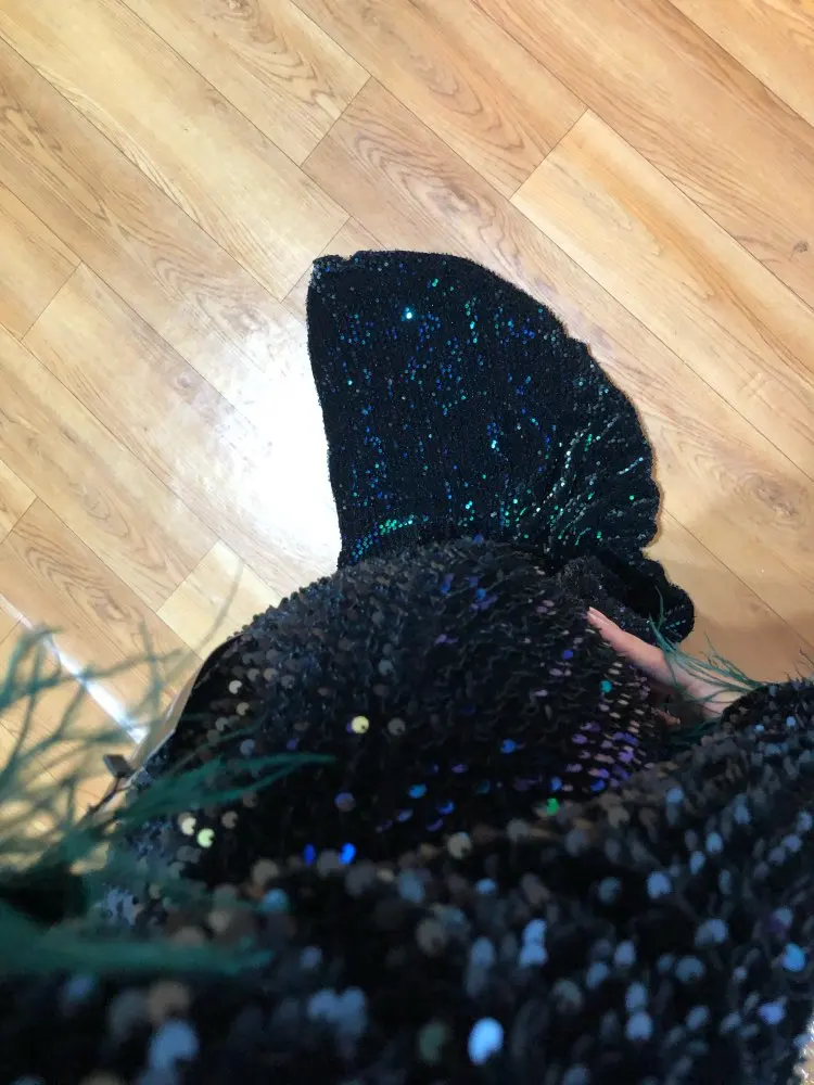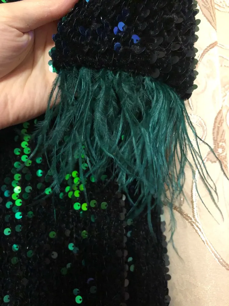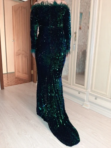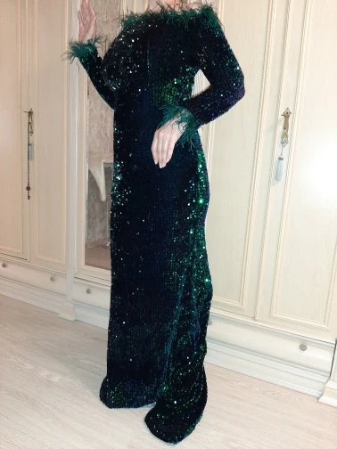 The dress is beautiful! Well, not wow of course as they write. The quality of tailoring is not quite perfect. Lining with threads protruding. The batches left a little in some places, I just cut them off. If the dress cost 1500, then wow!!! And for 3500 could be cleaner sewn. But the patches on the floor do not crumble. Stretch fabric, stretches well. To the touch is a soft jersey, similar to panvelvet. I ordered XL for the parameters 100-77-107. But the store umnichka advised L. I listened to him, what happened, look at the photo. Shipping fast, 3 weeks after shipment. In general, I recommend! Thank you!