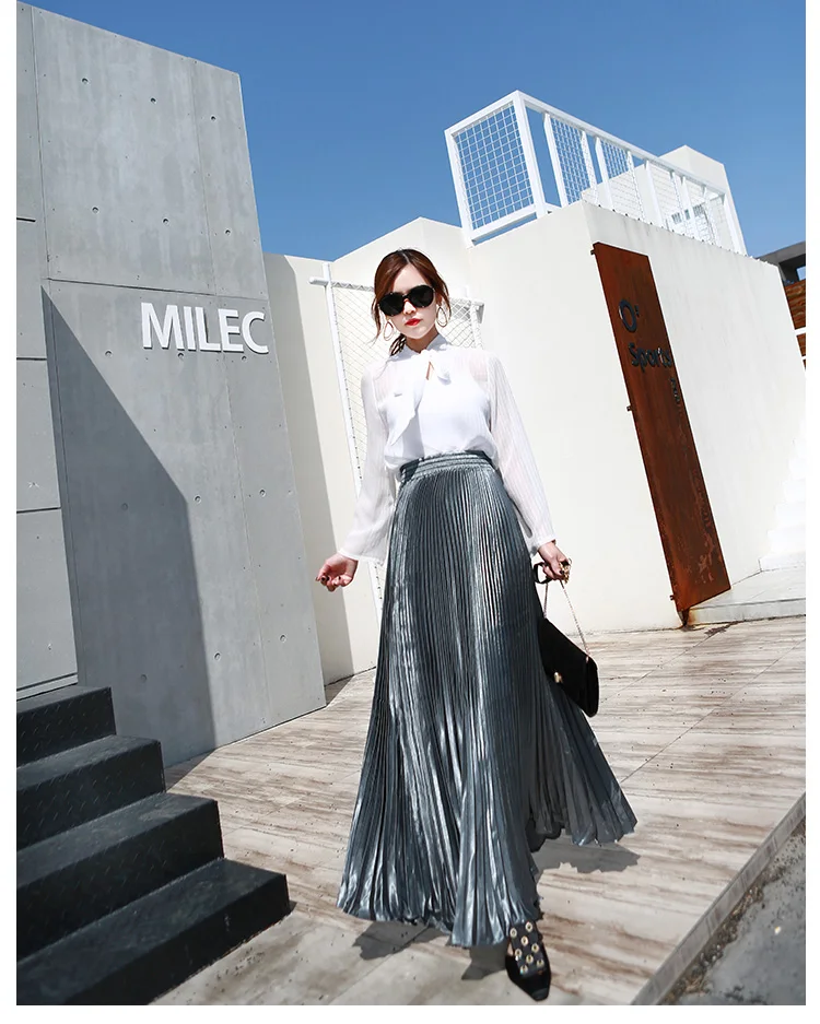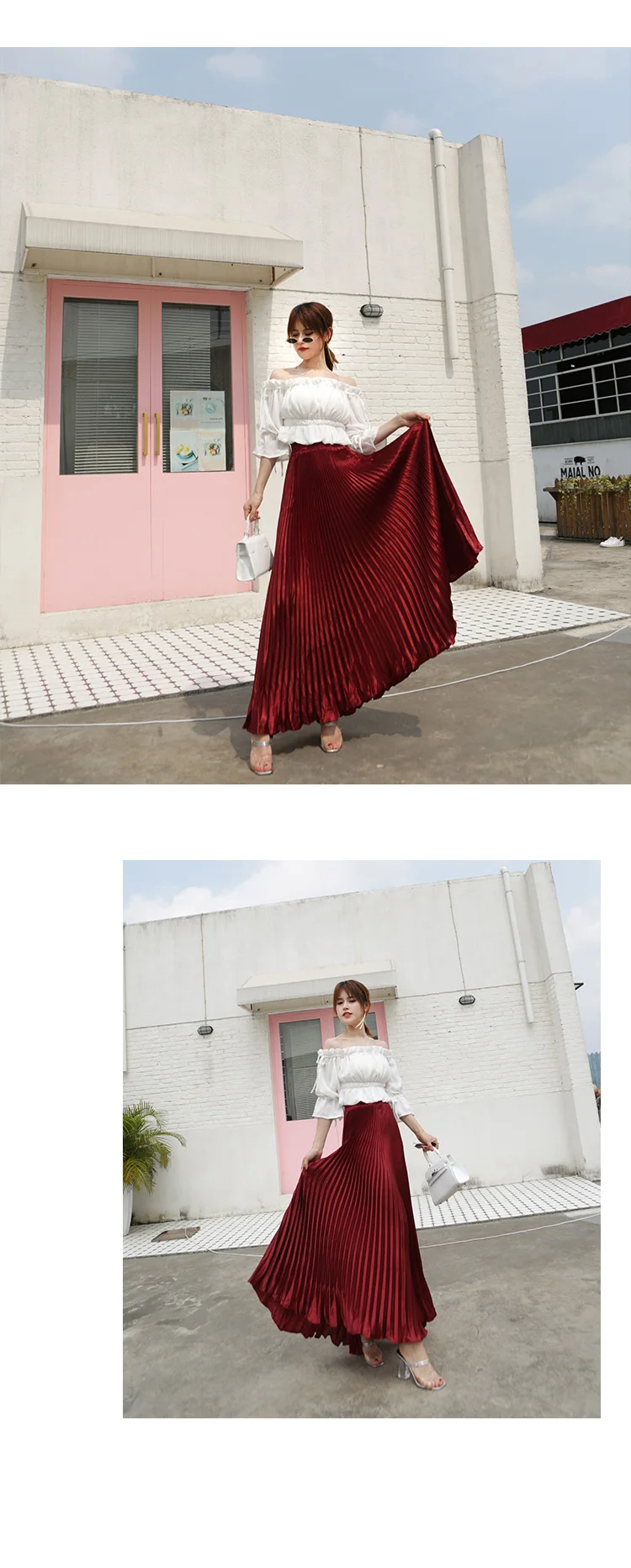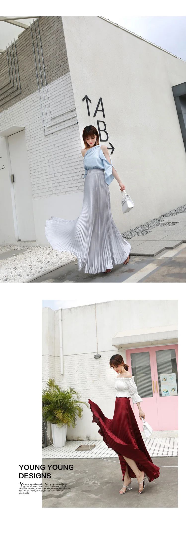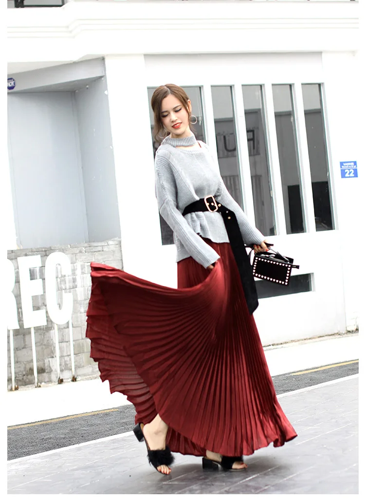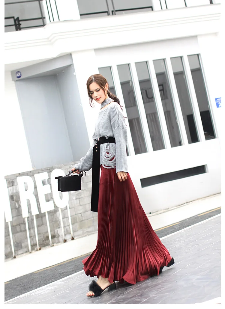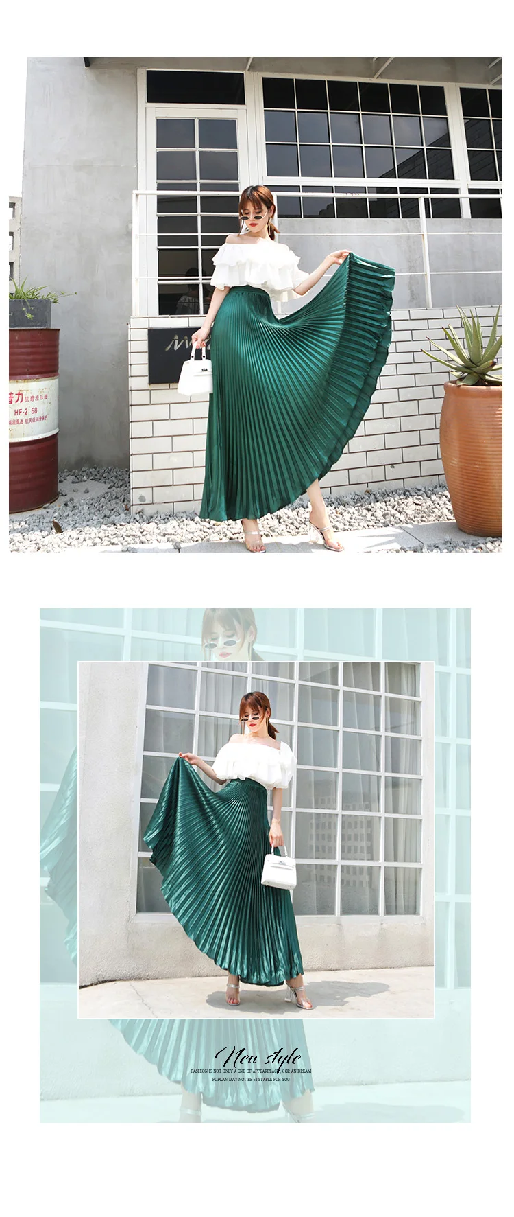 FREE SHIPPING Maxi Skirt High Waist Pleated Skirts JKP3073