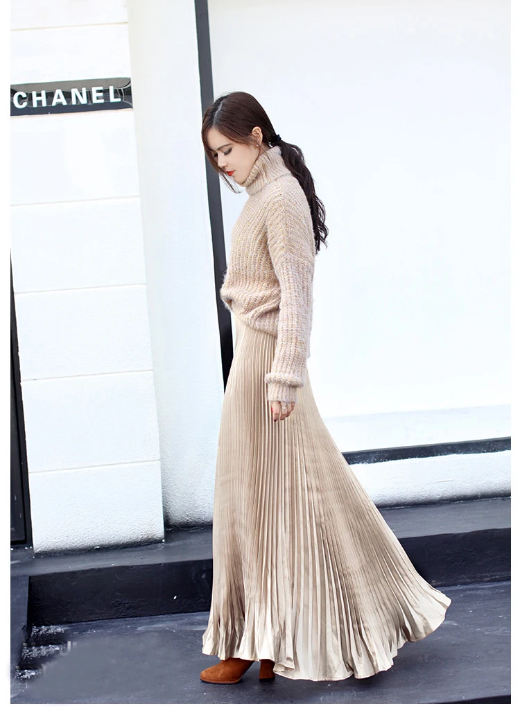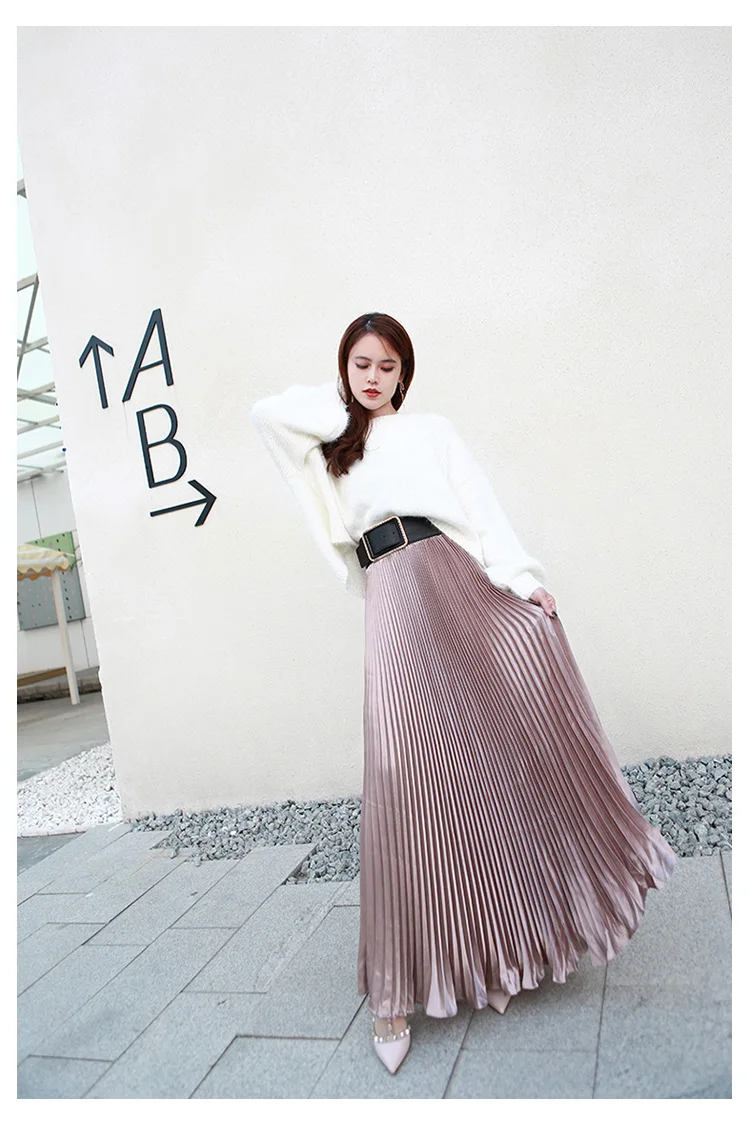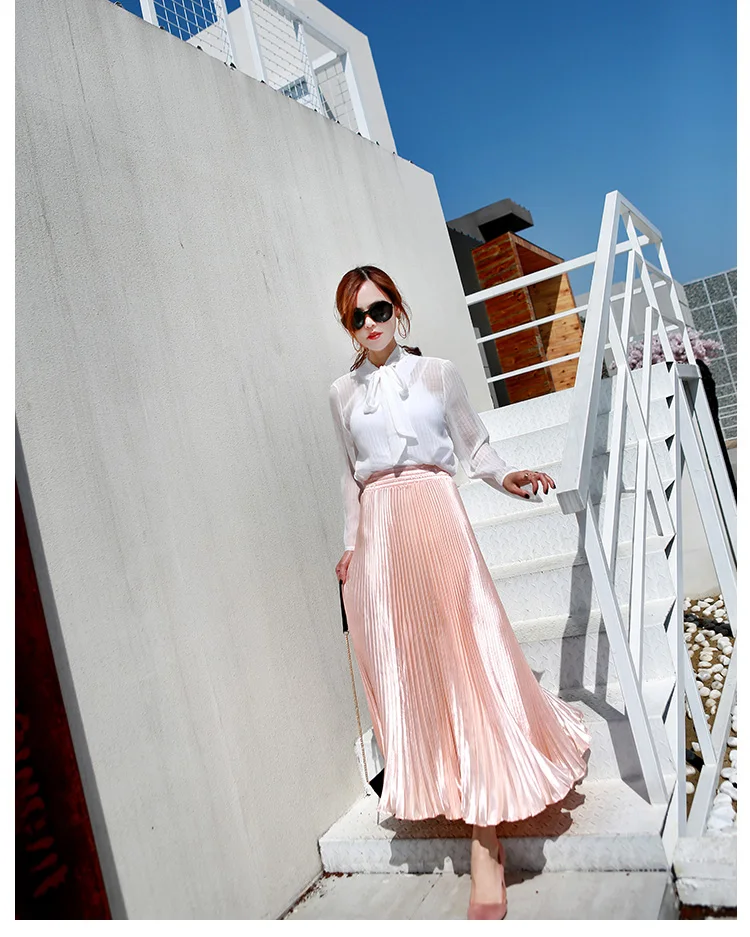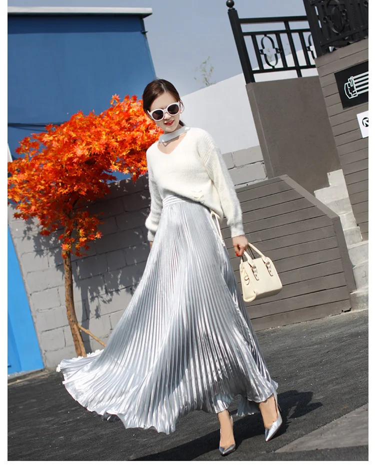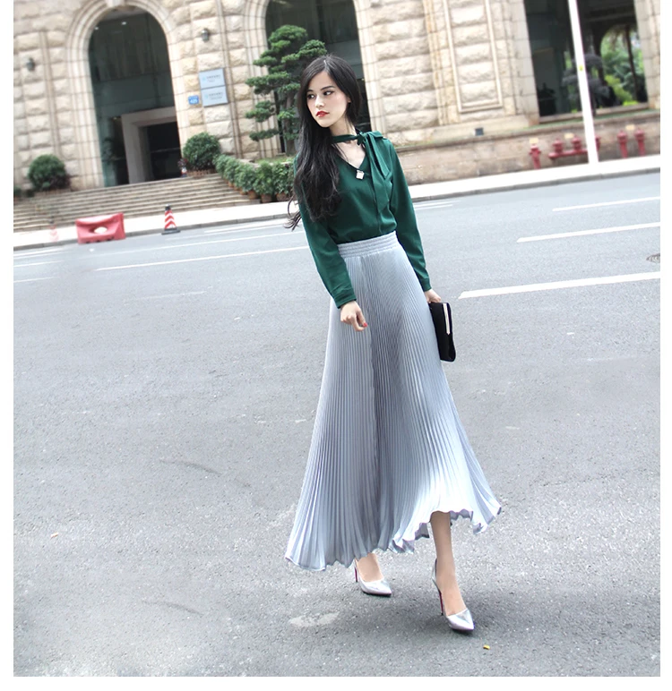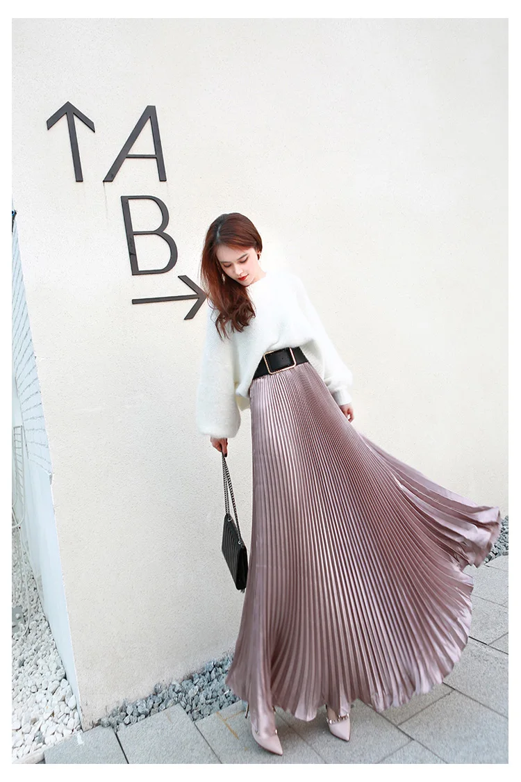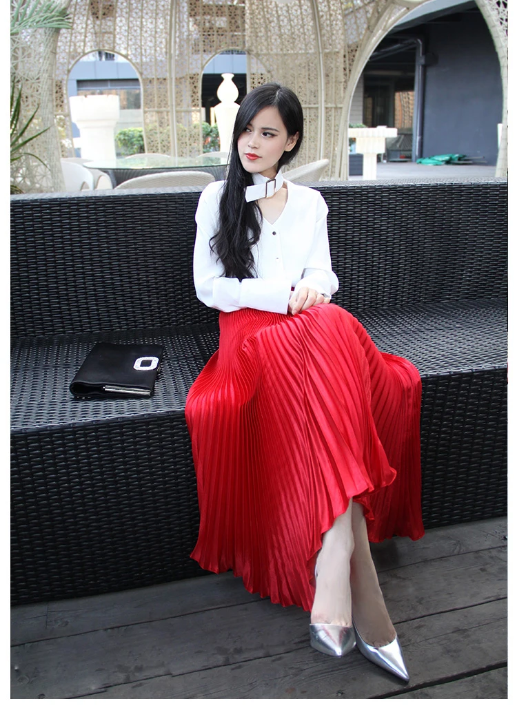 FREE SHIPPING Maxi Skirt High Waist Pleated Skirts JKP3073